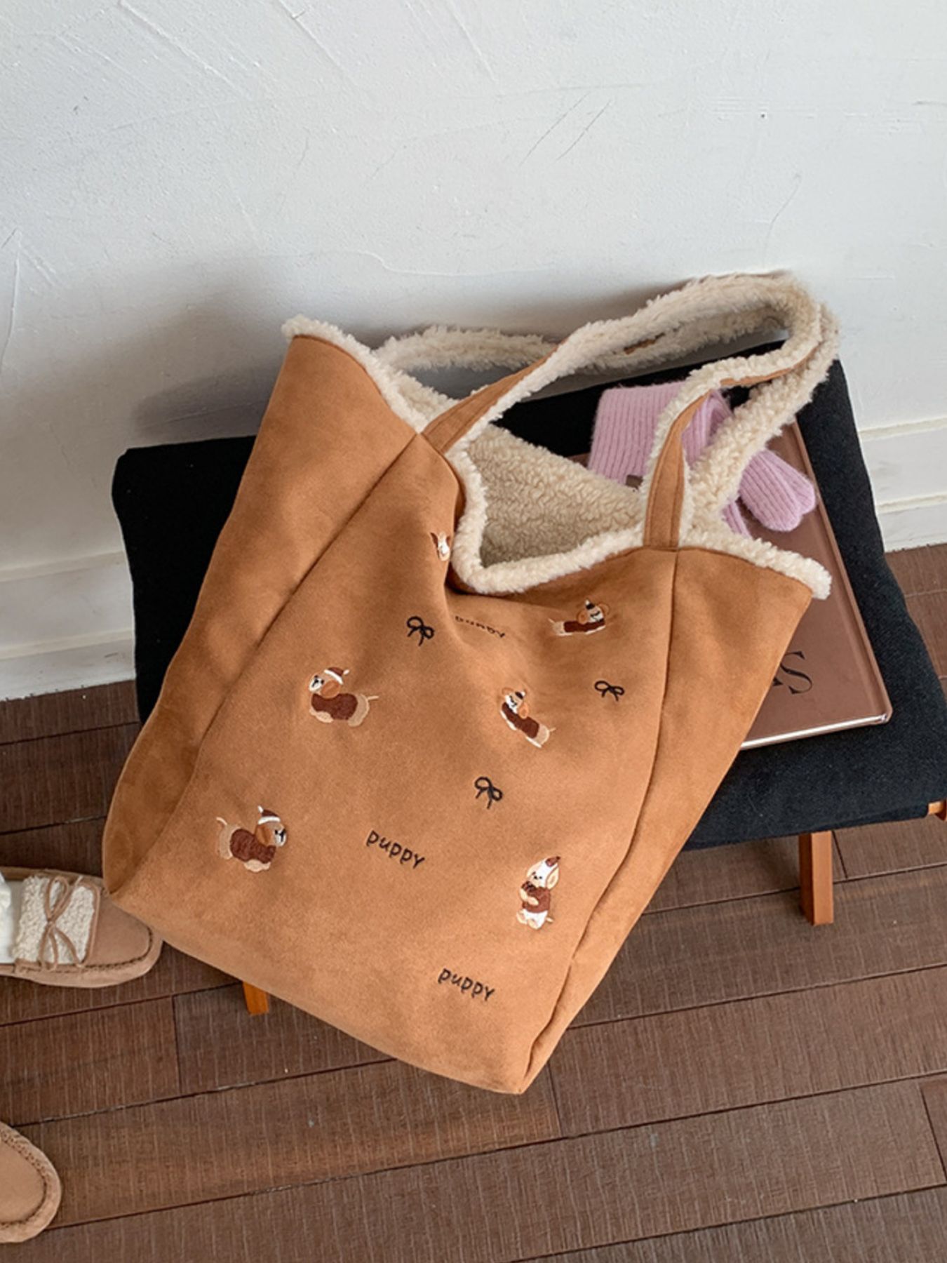 Embroidered Plush Tote Bag