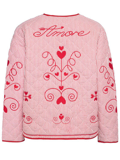 Embroidered Tied Striped Round Neck Coat