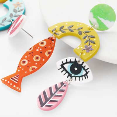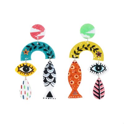 Evil Eye & Fish Dangle Earrings