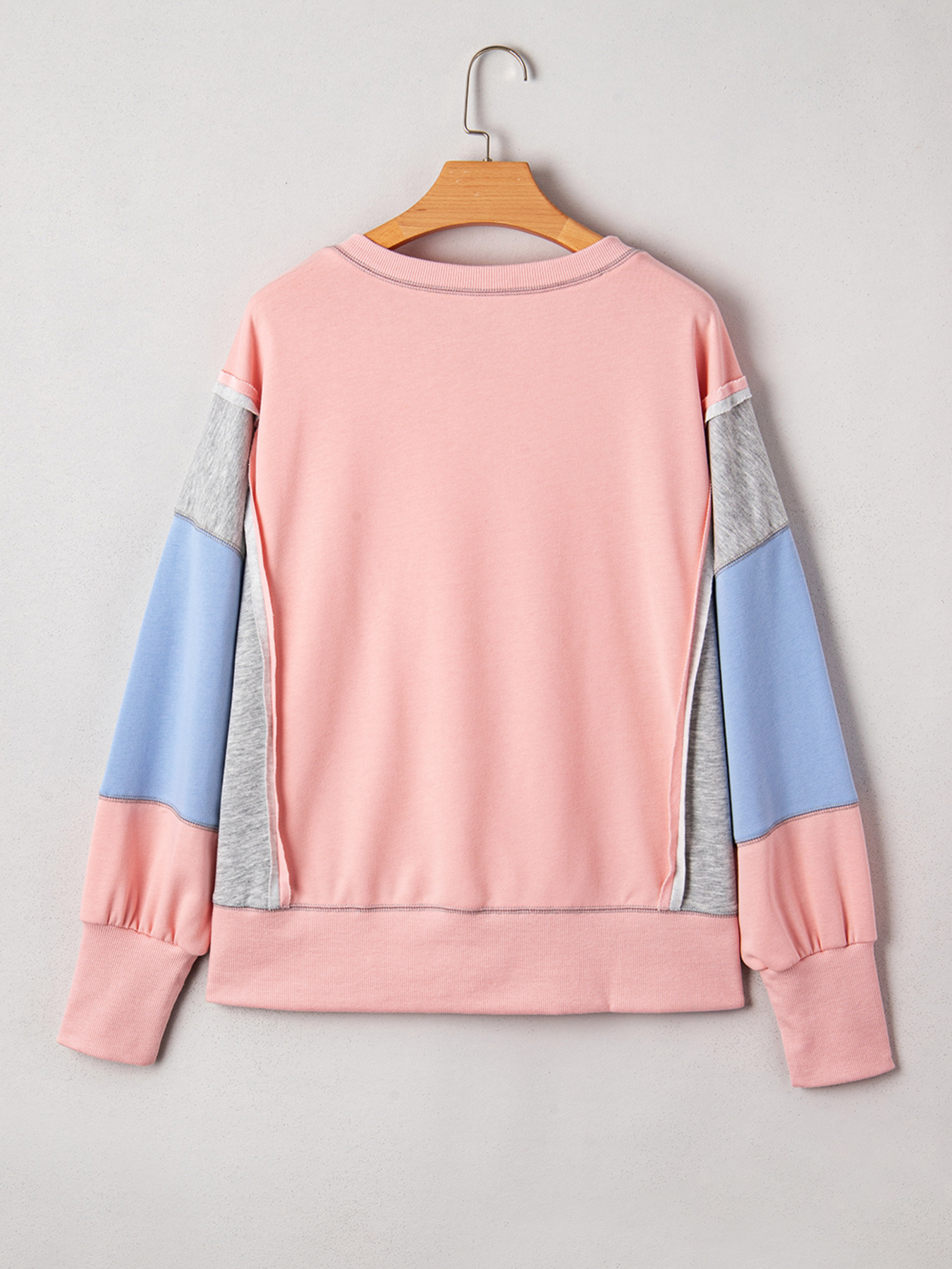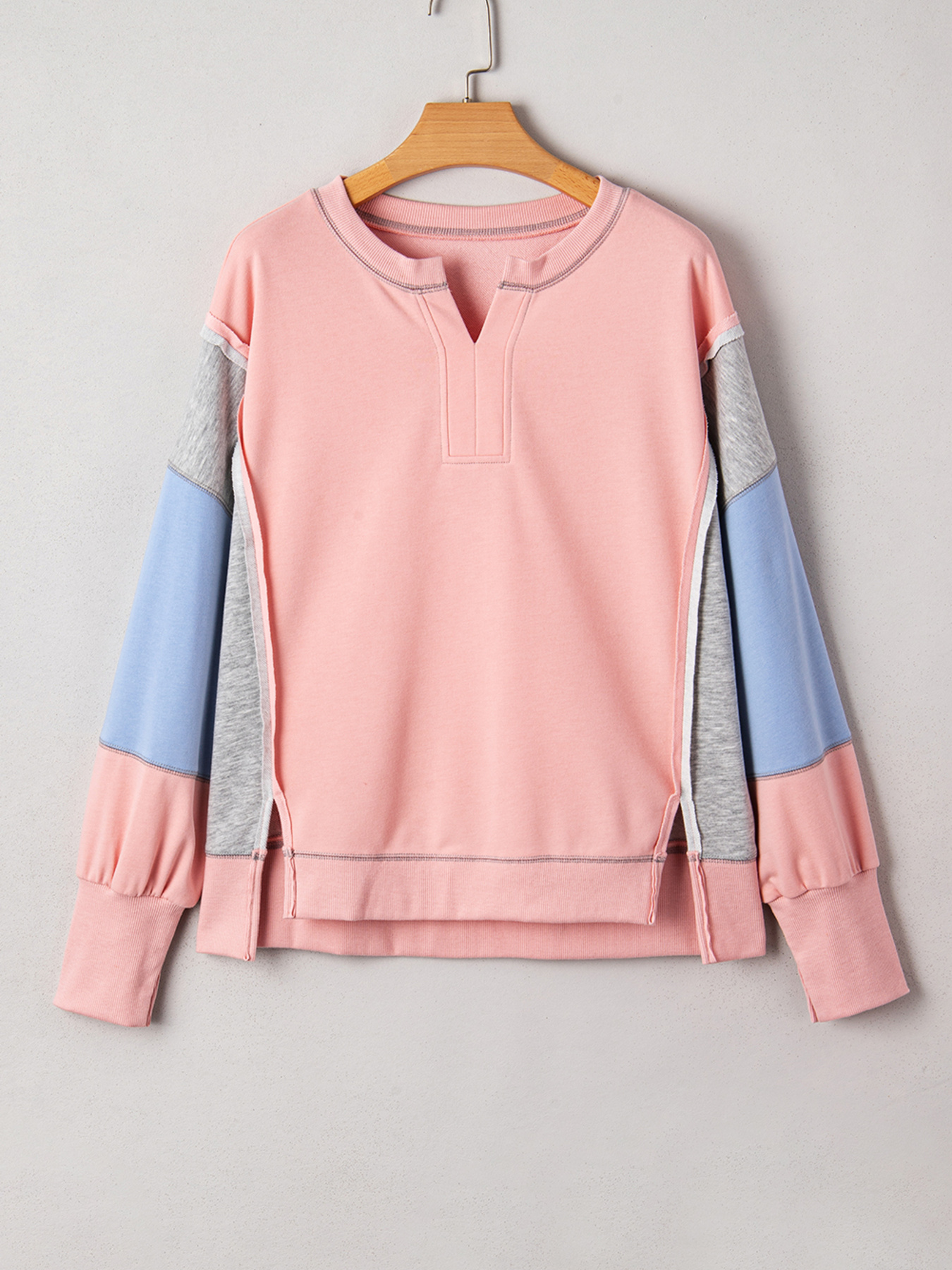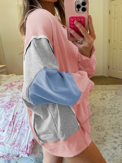 Exposed Seam Color Block Patchwork Slit Cuffs Oversize Sweatshirt