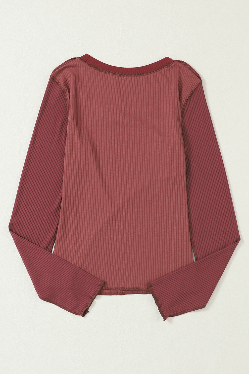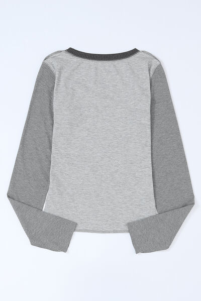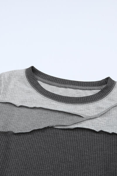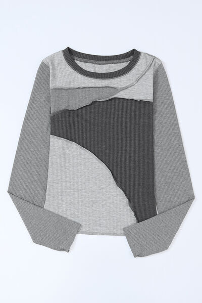 Exposed Seam Contrast Round Neck Long Sleeve T-Shirt