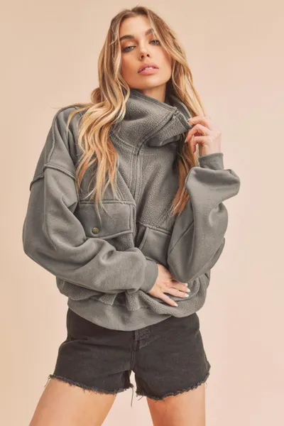 Exposed Seam Half Zip Sweatshirt with Pockets