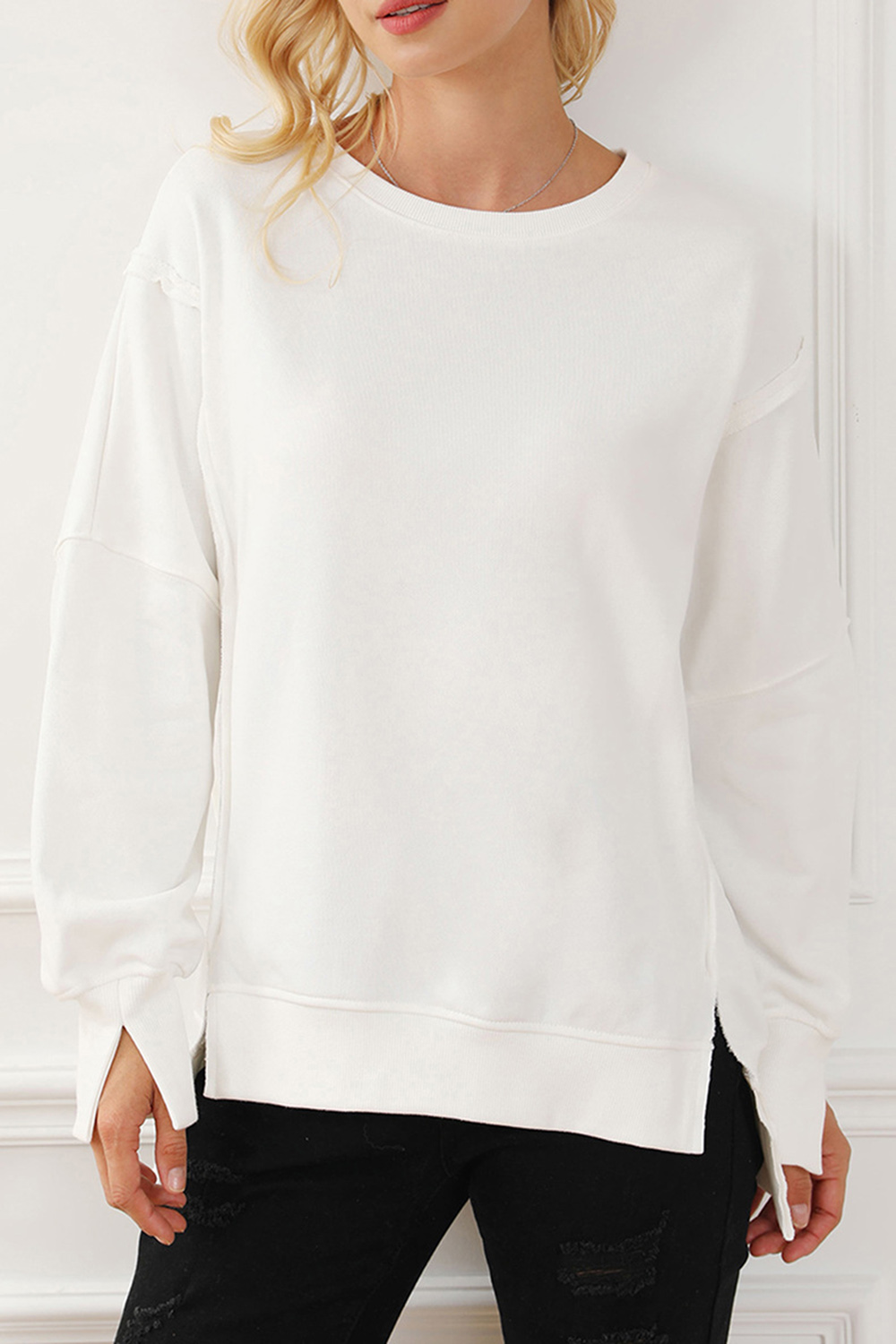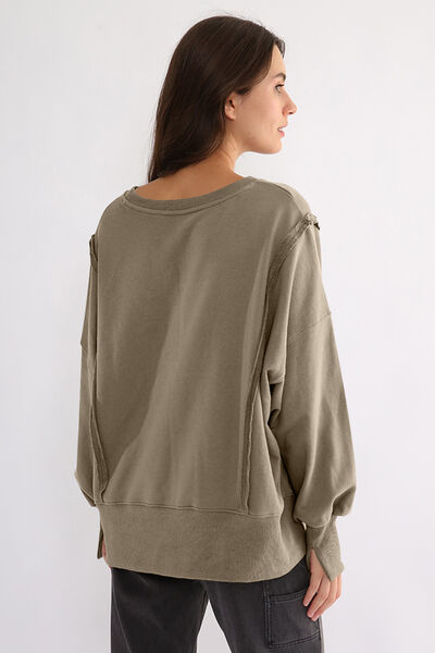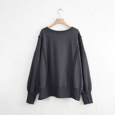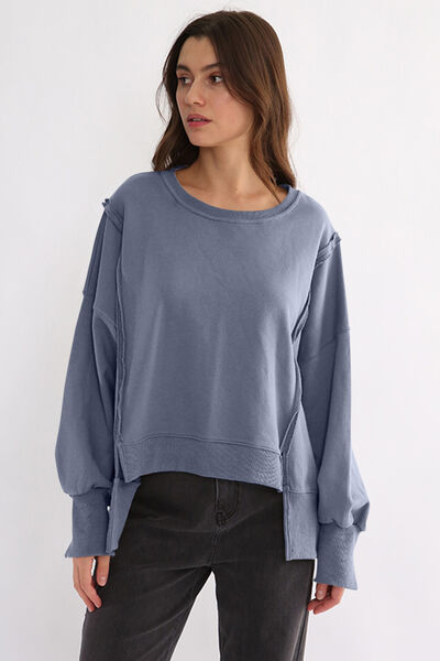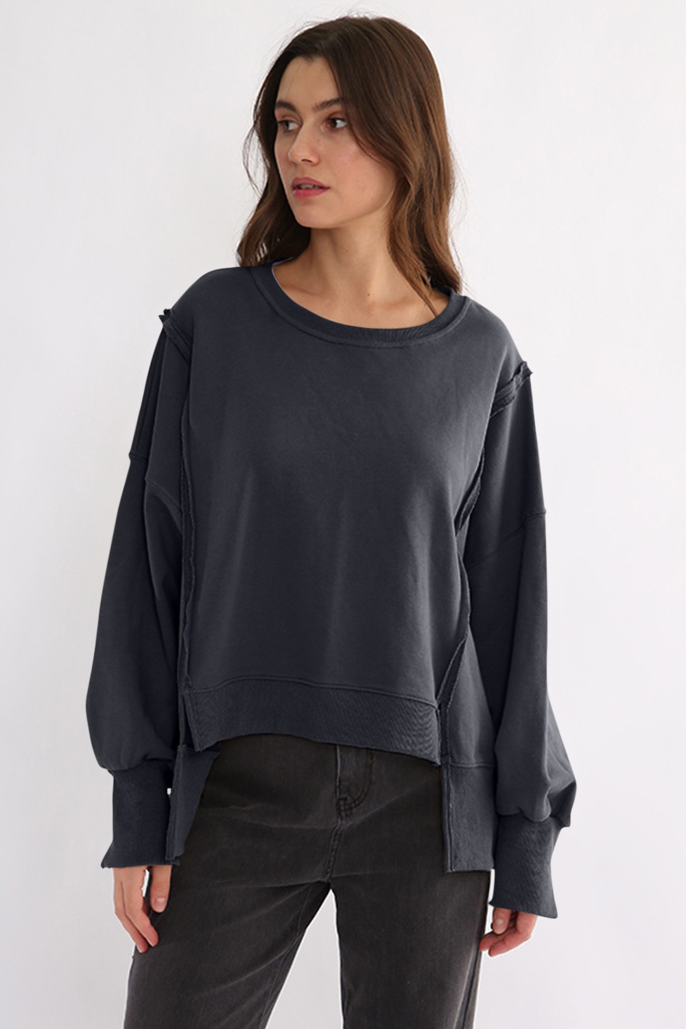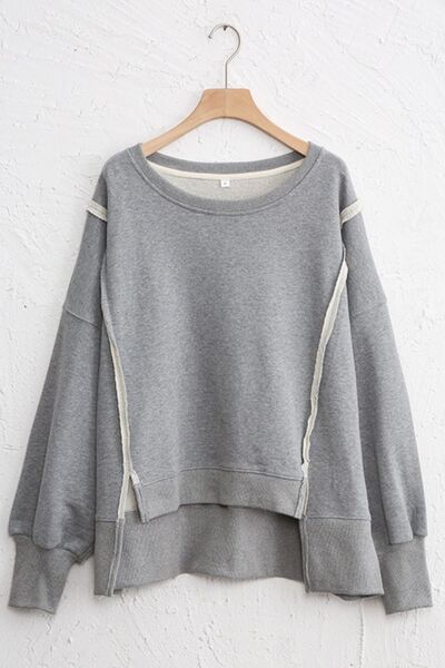 Exposed Seam High-Low Long Sleeve Sweatshirt