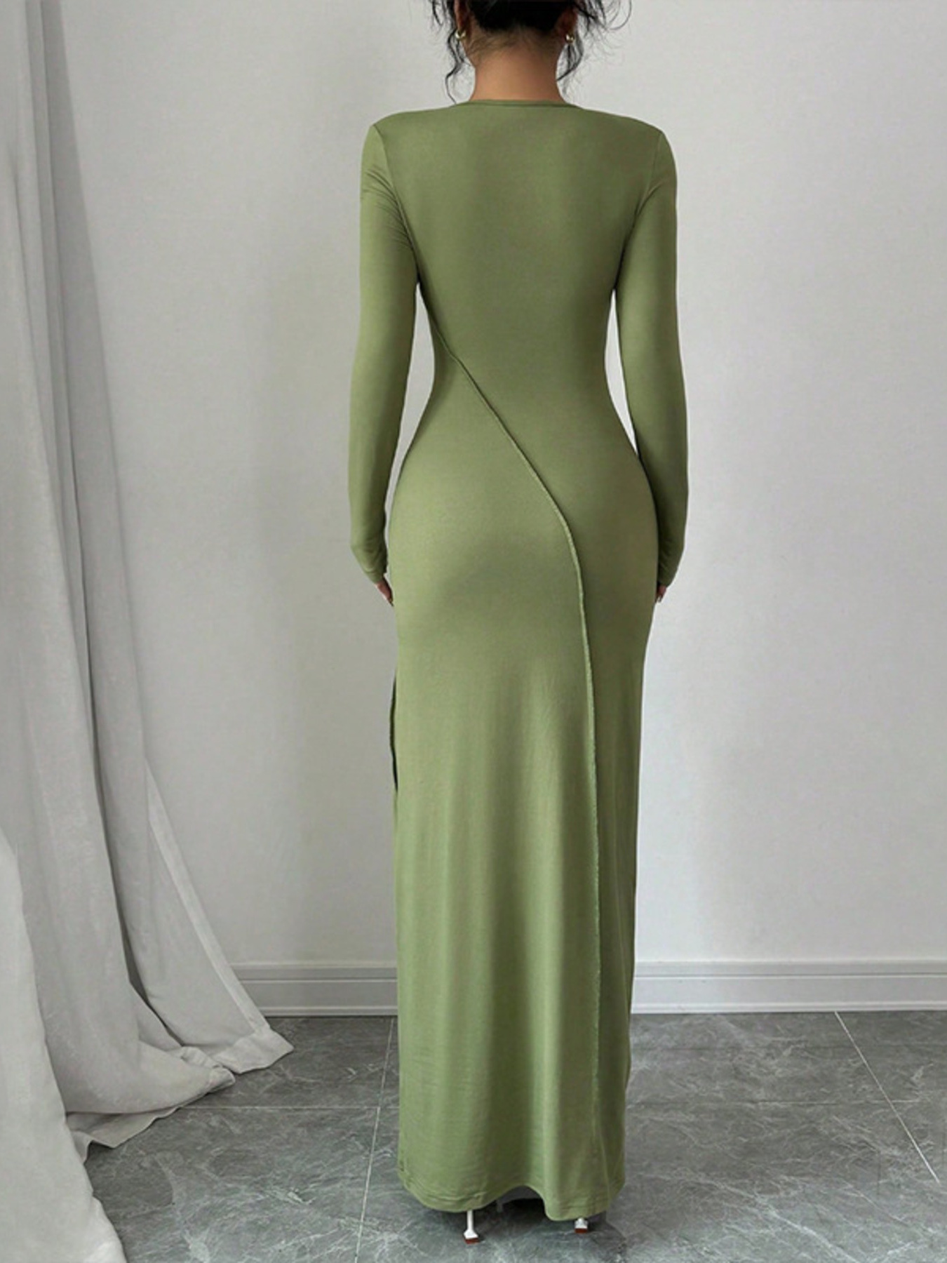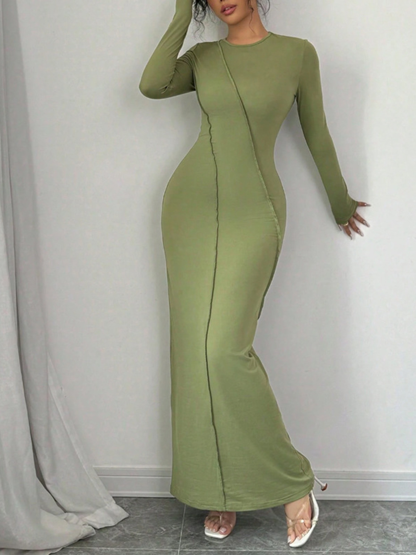 Exposed Seam Long Sleeve Maxi Dress