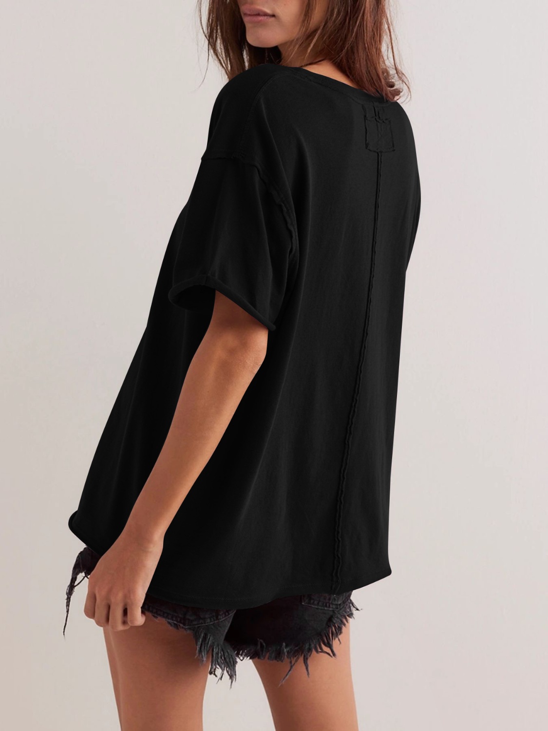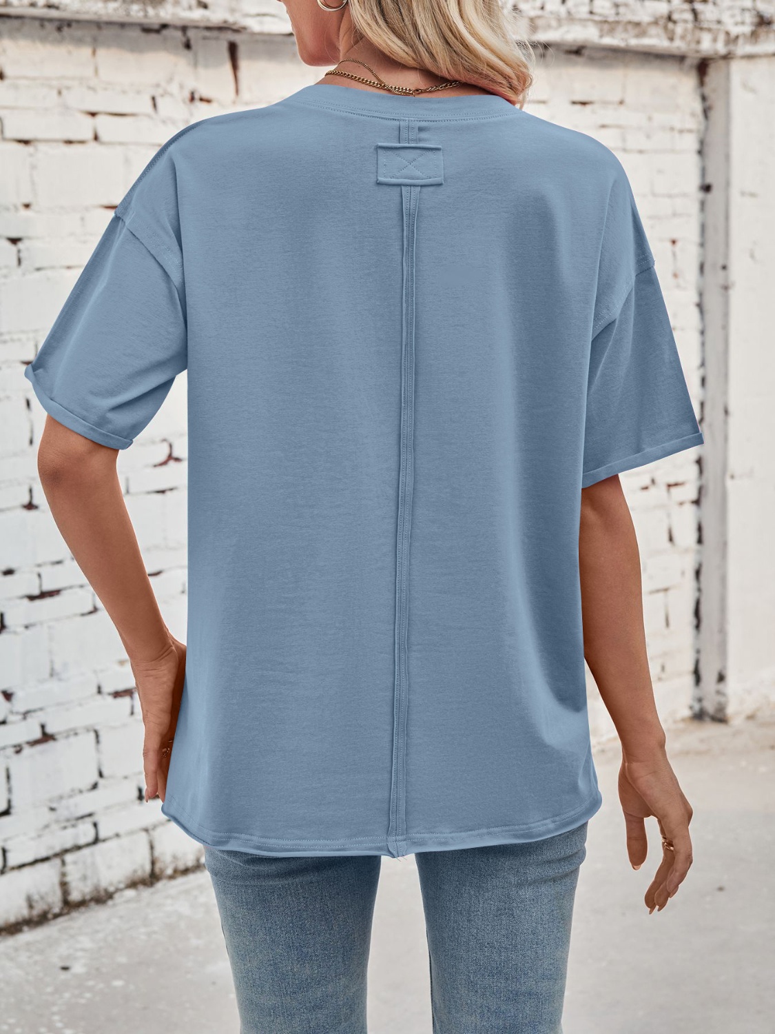Exposed Seam Round Neck Half Sleeve T-Shirt