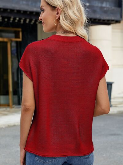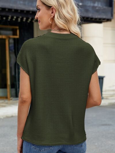 Exposed Seam Round Neck Short Sleeve Sweater