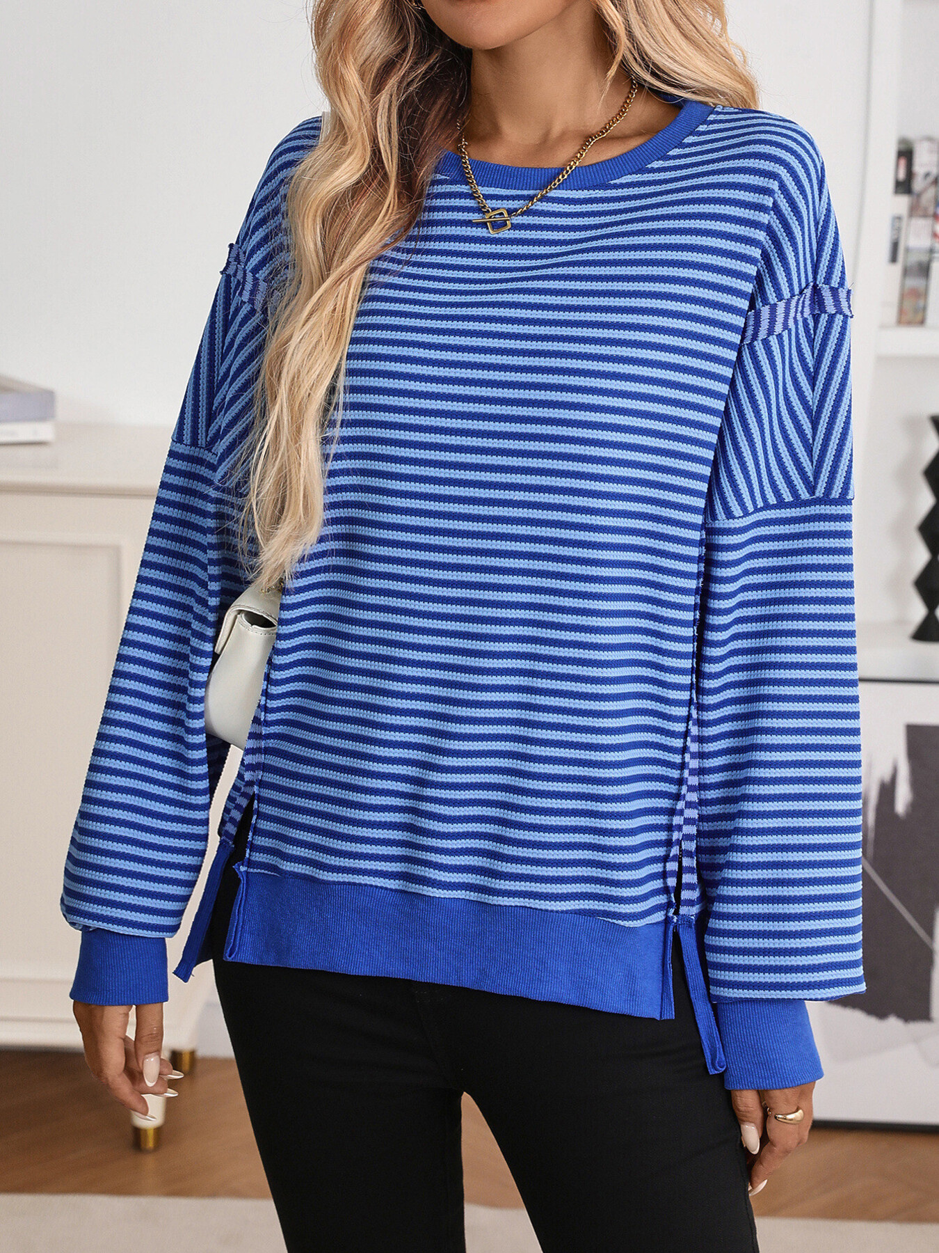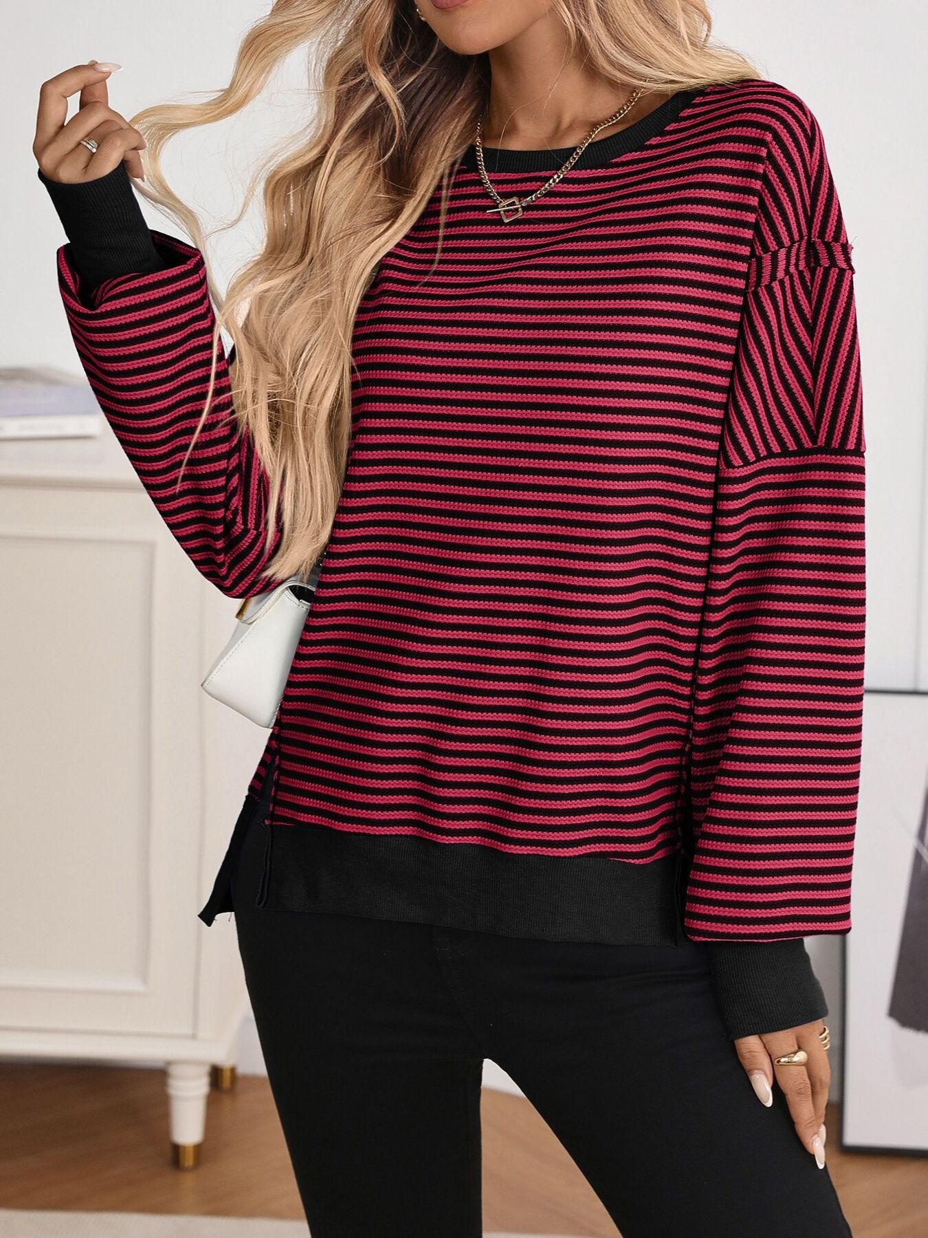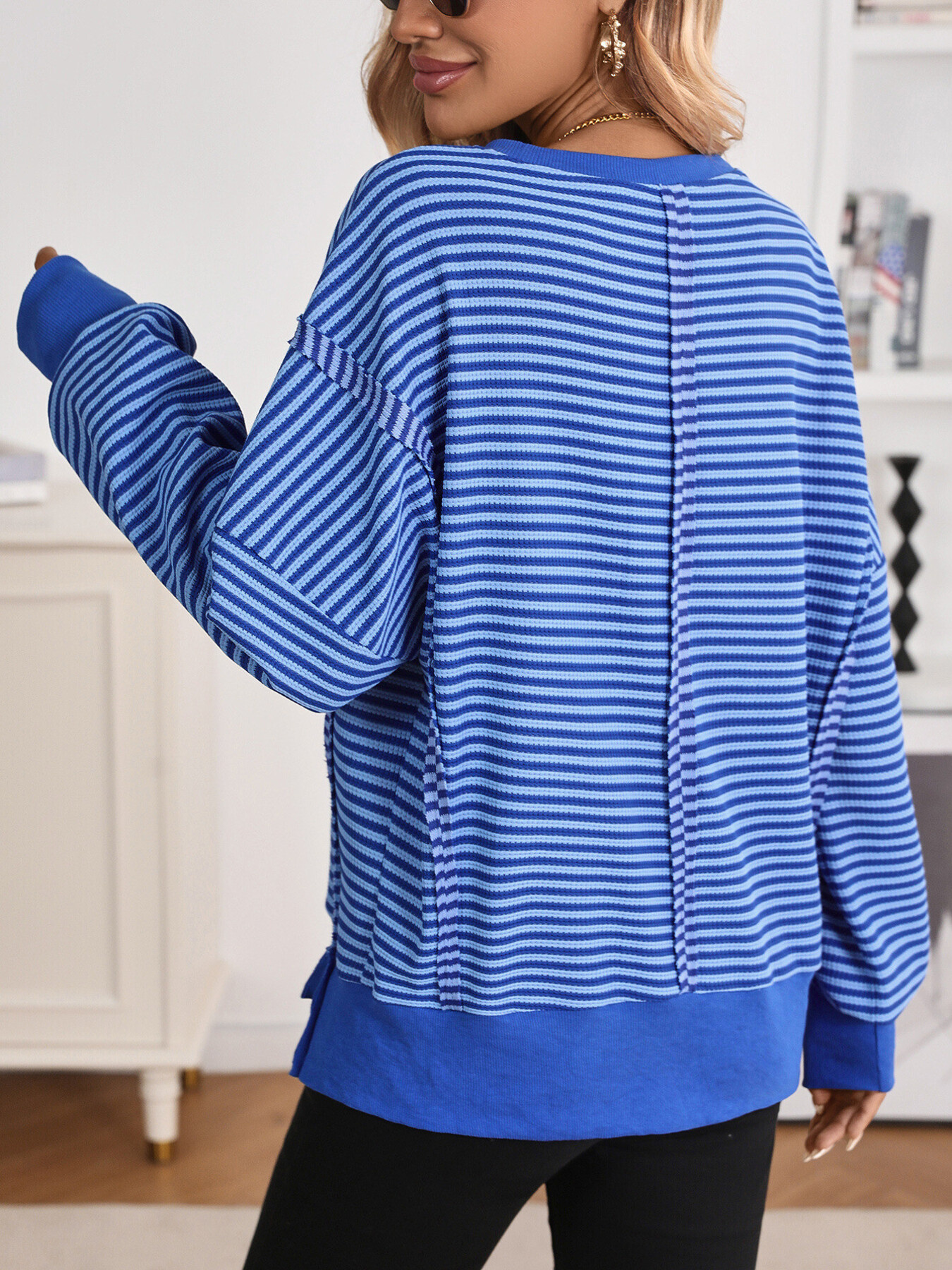 Exposed Seam Striped Contrast Sweatshirt