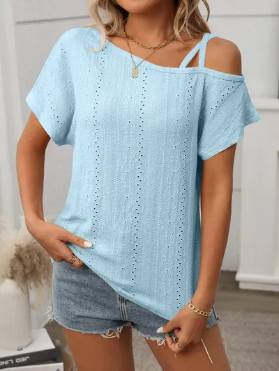 Eyelet Asymmetrical Shoulder Short Sleeve T-Shirt