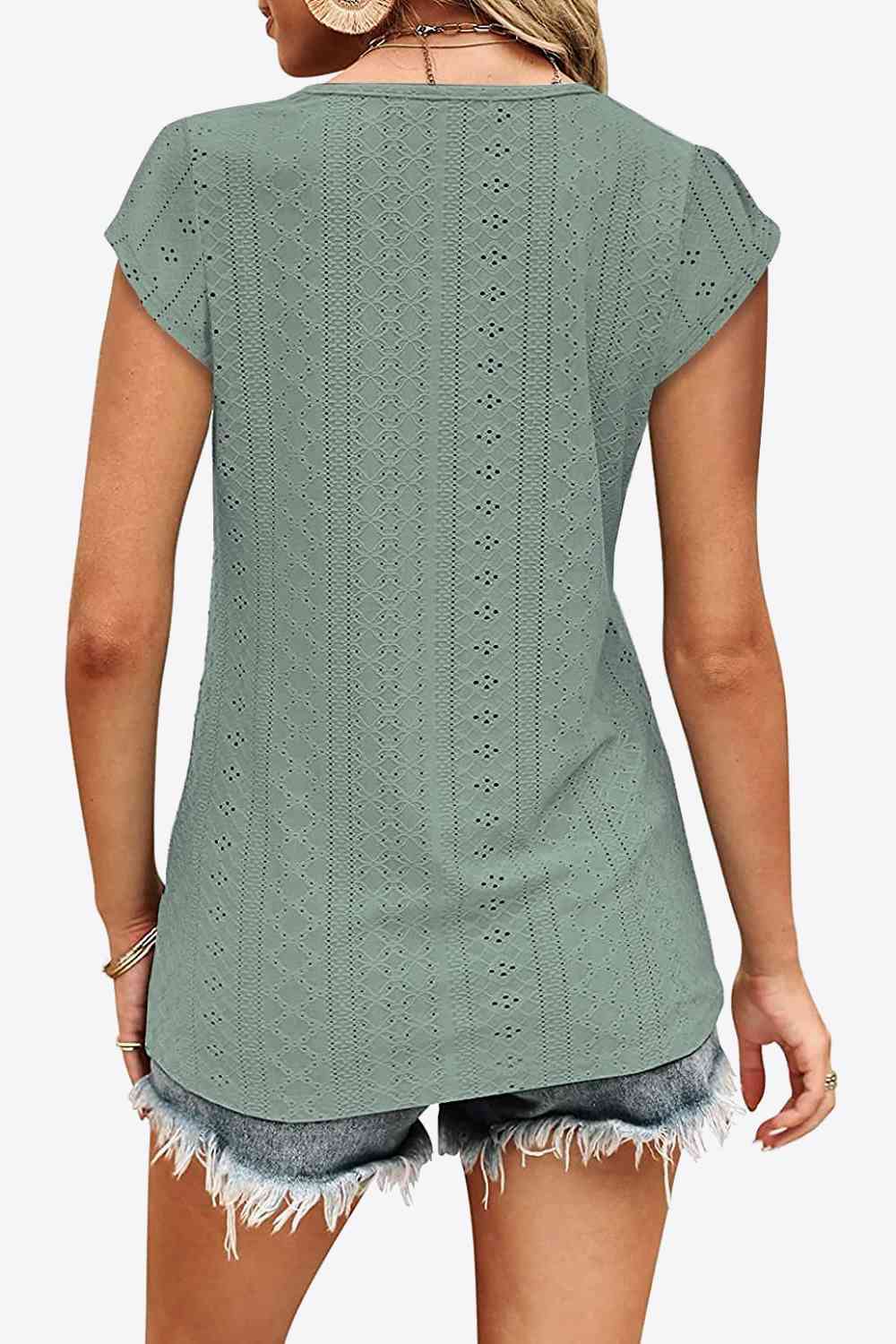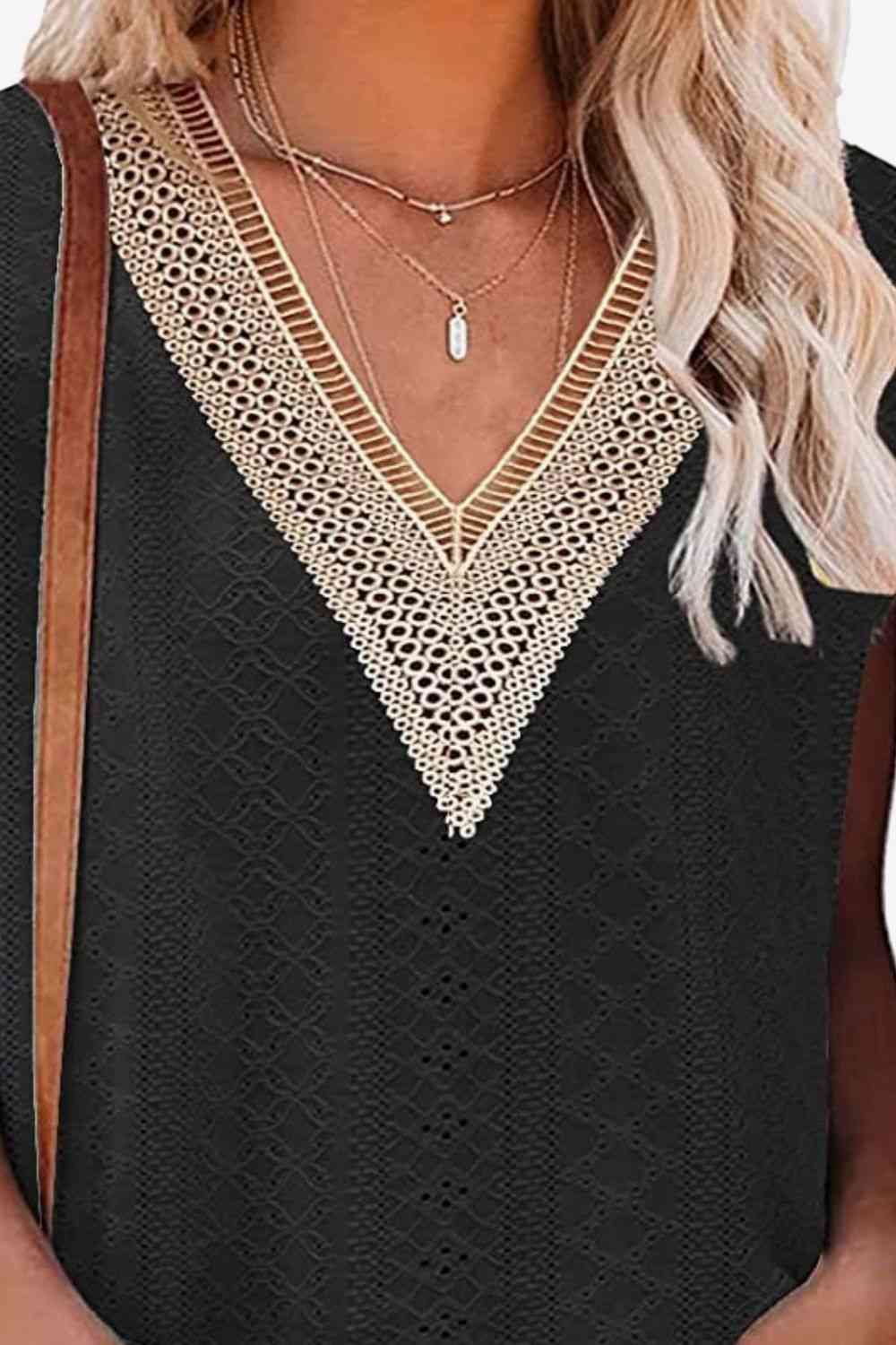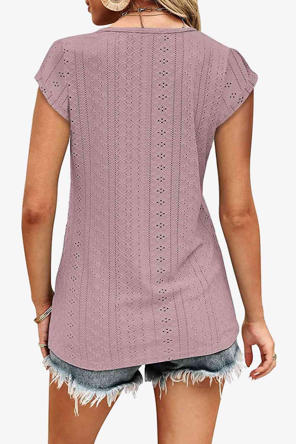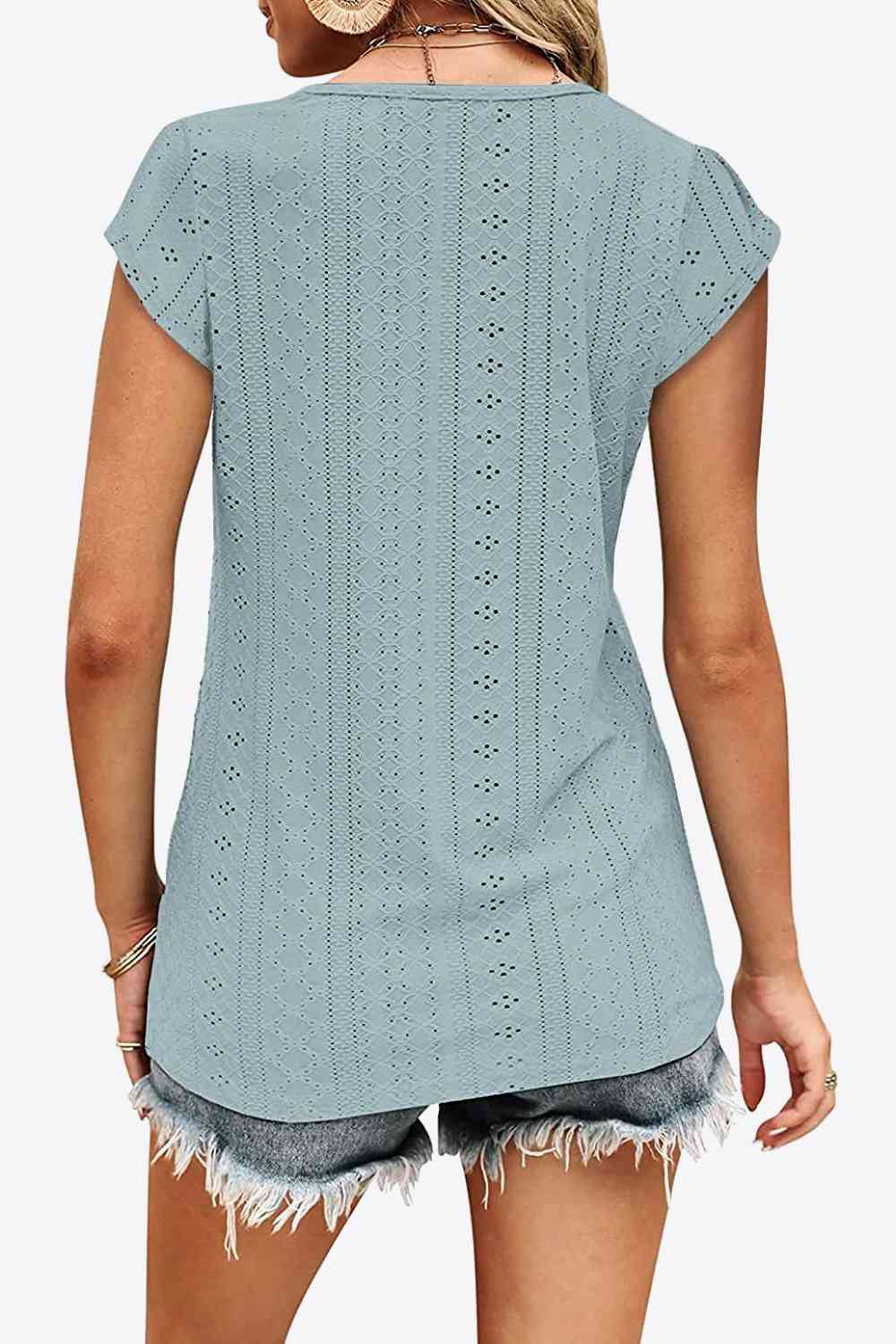Eyelet Contrast V-Neck Tee