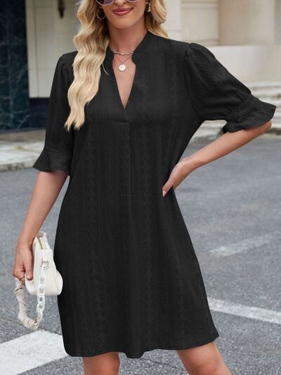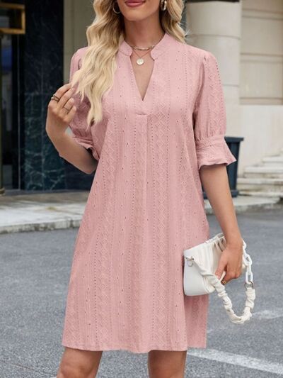 Eyelet Flounce Sleeve Mini Dress