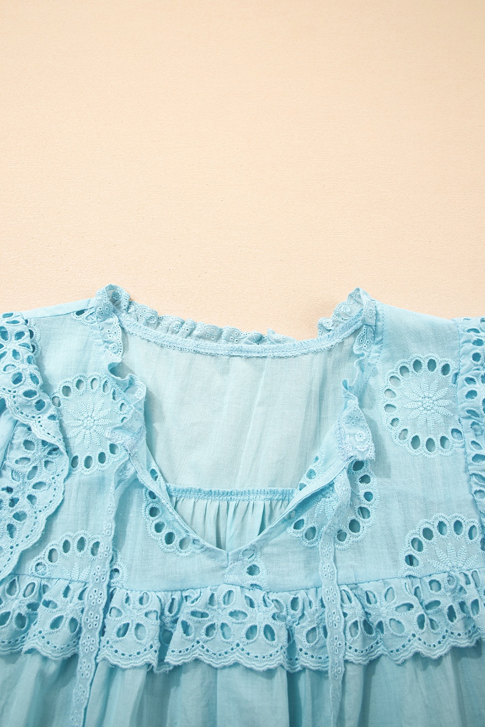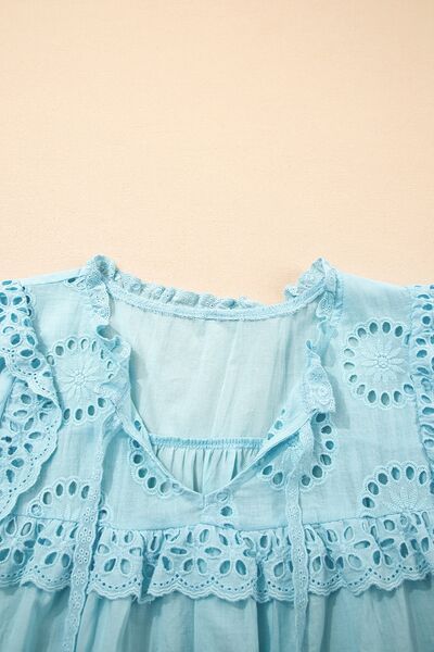 Eyelet Lace Trim Puff Sleeve Blouse