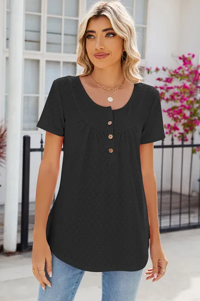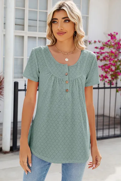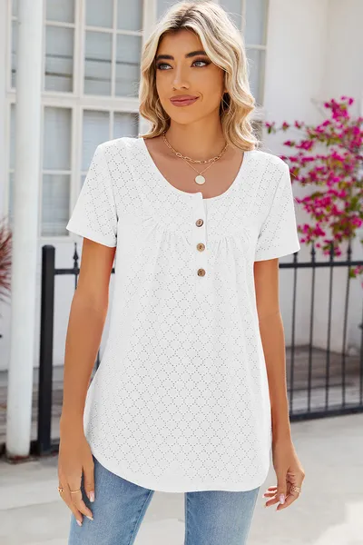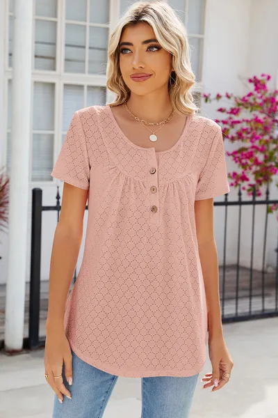 Eyelet Quarter Button Short Sleeve T-Shirt