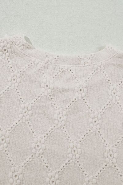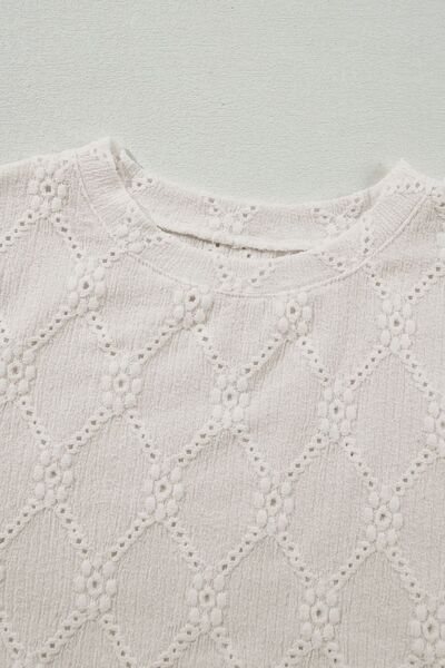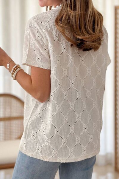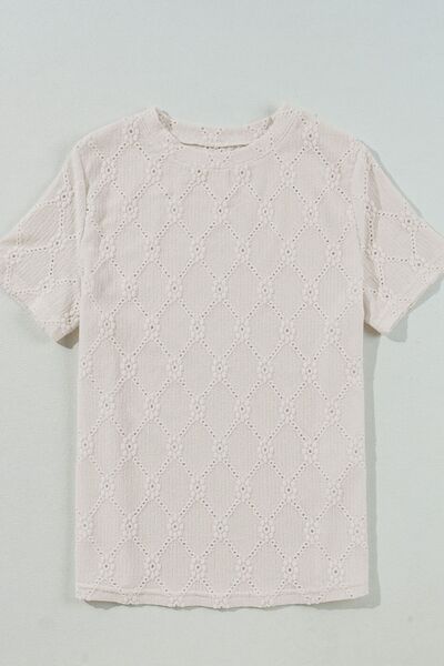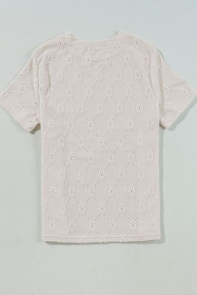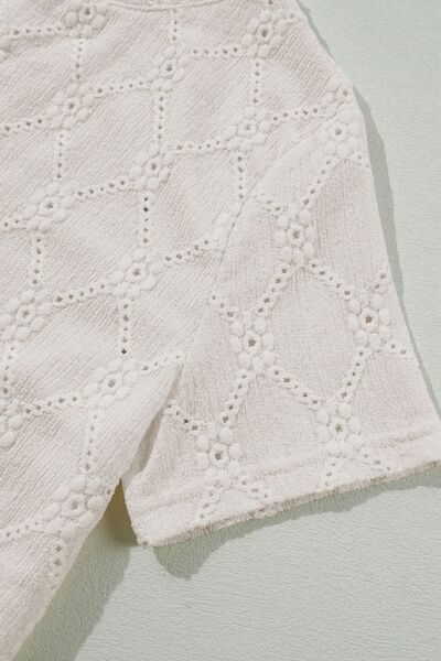 Eyelet Round Neck Short Sleeve Blouse
