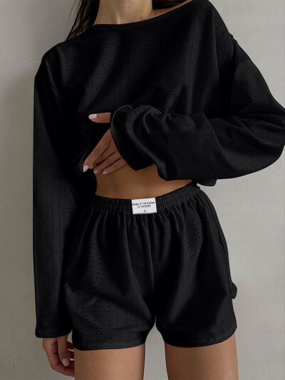 Eyelet Round Neck Top and Shorts Set