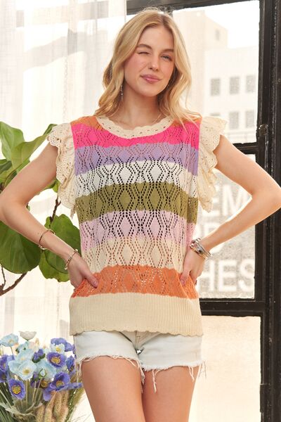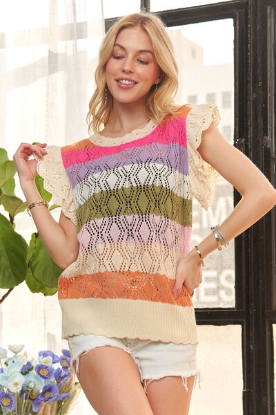 Eyelet Sleeve Multi Color Crochet Top