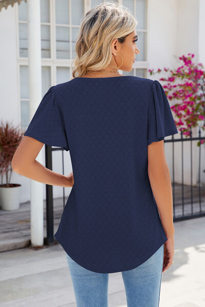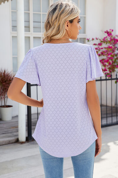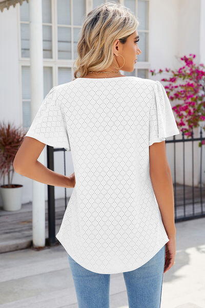 Eyelet Square Neck Flutter Sleeve Blouse