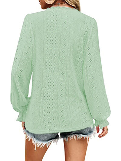 Eyelet V-Neck Flounce Sleeve Blouse