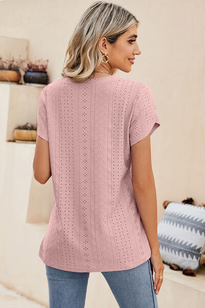Eyelet V-Neck Petal Sleeve T-Shirt