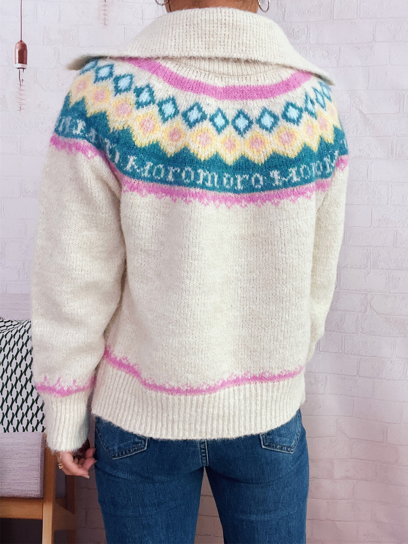 Fair Isle Pattern Zip-Up Cardigan