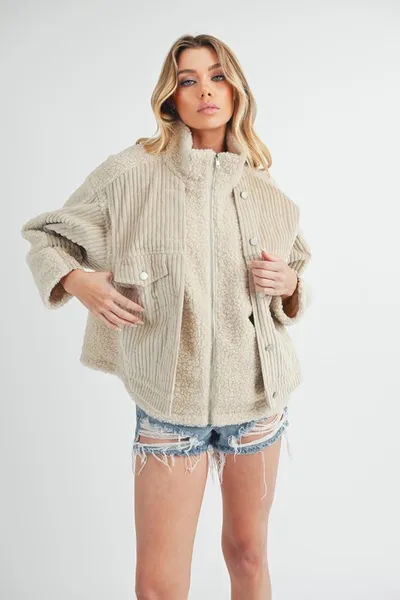 Fake Two Pieces Turtleneck Sherpa Jacket with Pockets