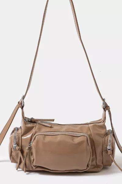 Fame Glossy Faux Leather Multi Pocket Hand Bag