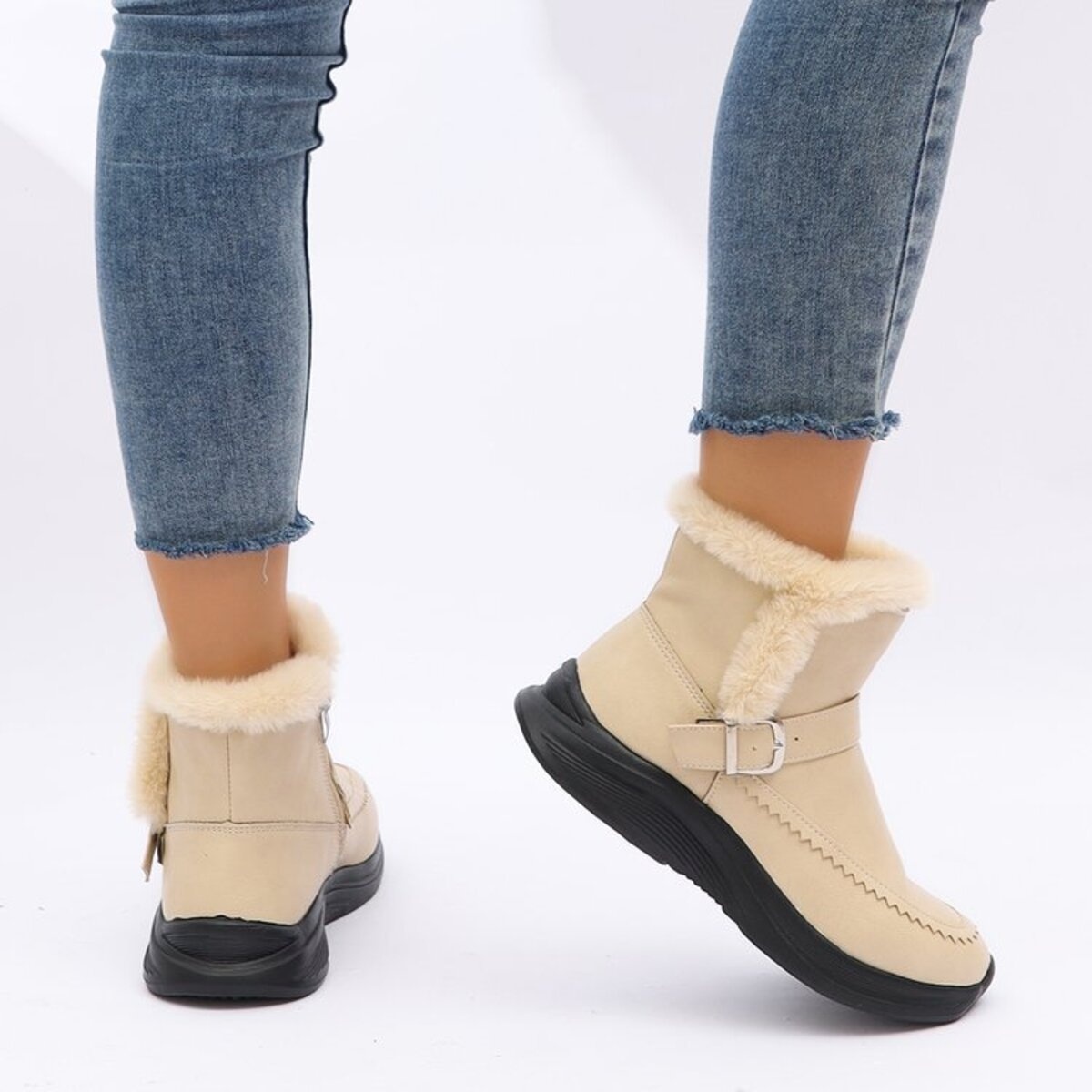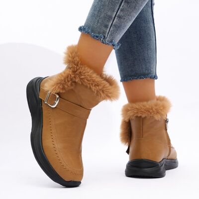 Faux Fur Buckle Boots