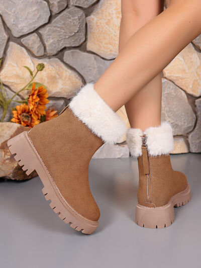 Faux Fur Trim Suede Platform Boots
