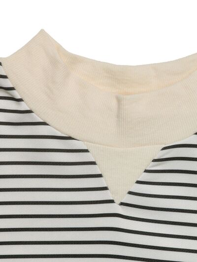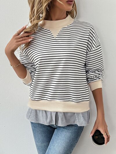 Faux Layered Striped Long Sleeve Sweatshirt