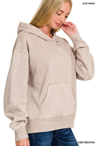 Fleece Acid Wash Kangaroo Pocket Hoodie