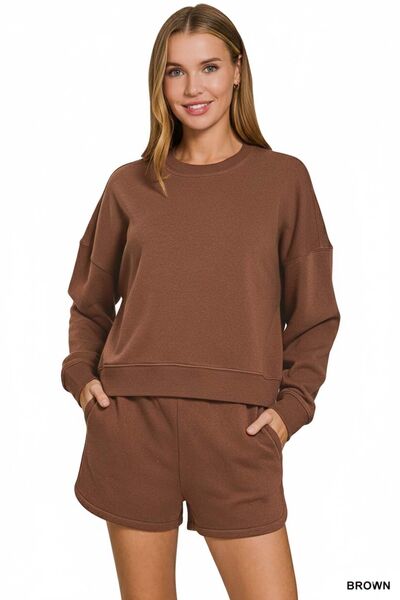 Fleece Long Sleeve Sweatshirts and Shorts Set
