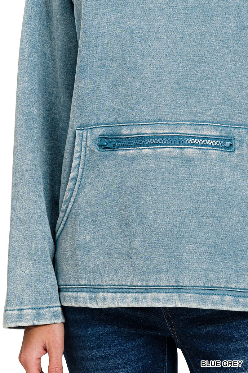 Fleece Washed High Neck Kangaroo Pocket Sweatshirt