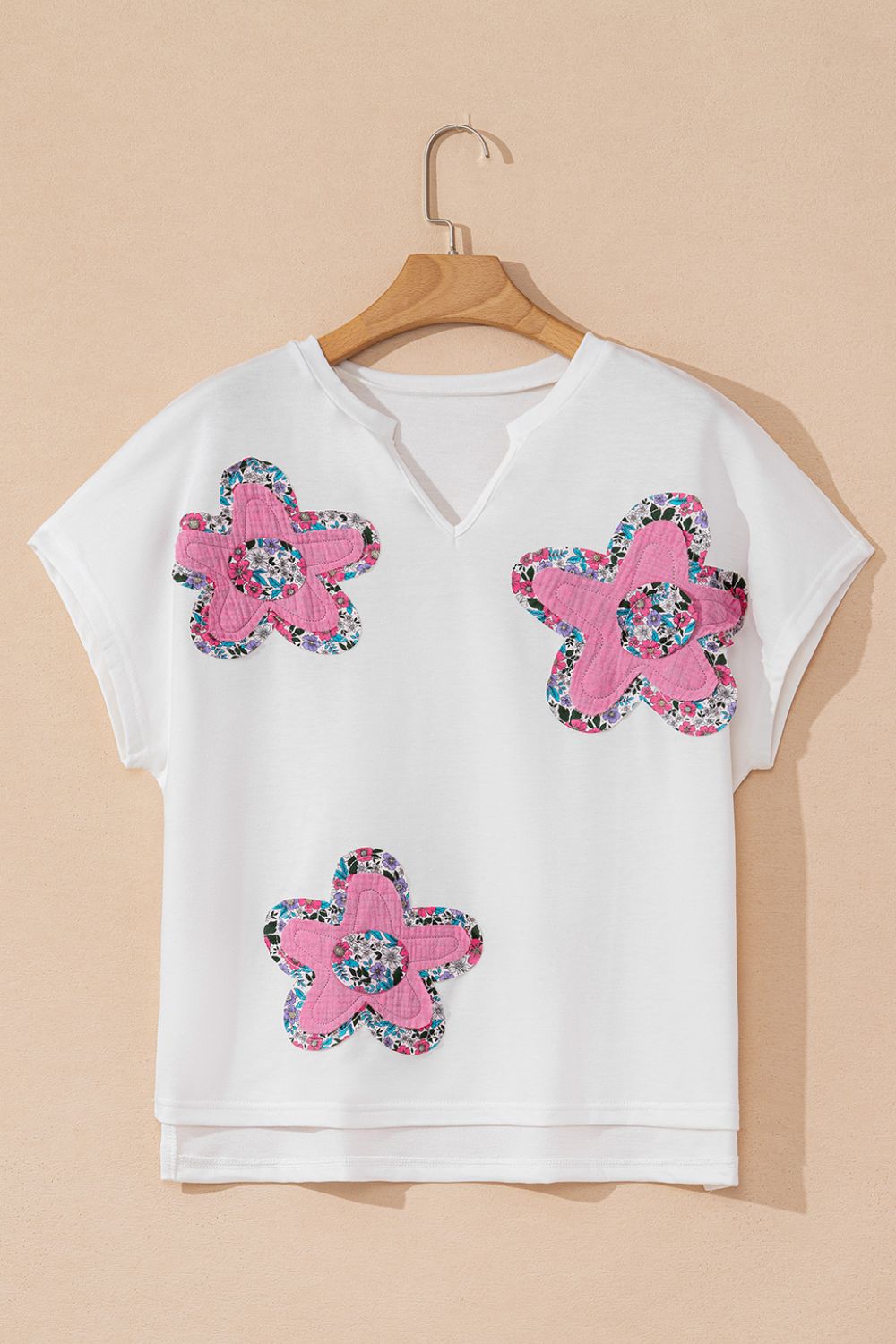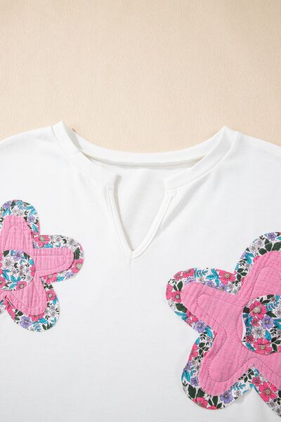Floral Applique Notched Dolman Sleeve Top
