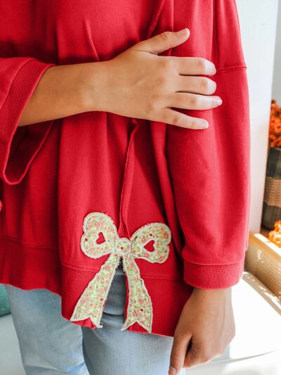 Floral Bow Patched Exposed Seam Patchwork Slit Baggy Sweatshirt
