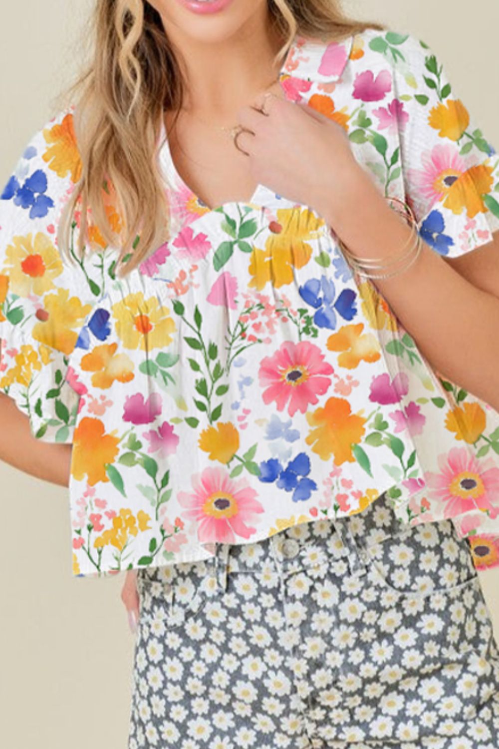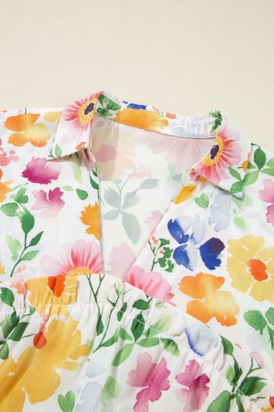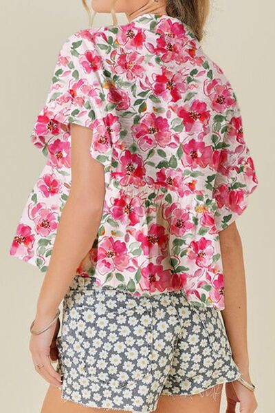 Floral Boxy Fit Ruffled Short Sleeve Blouse