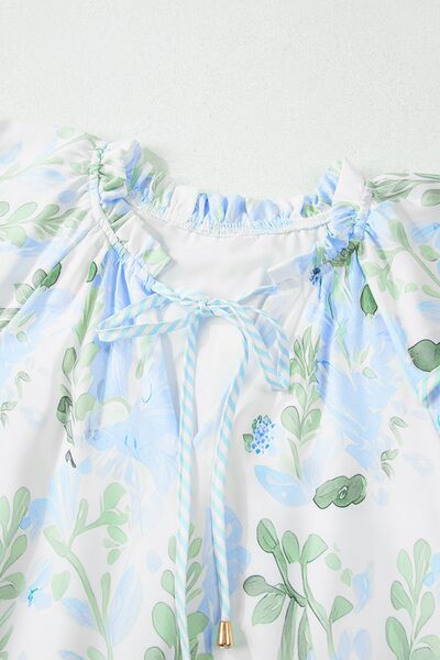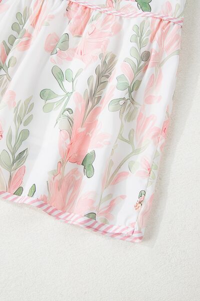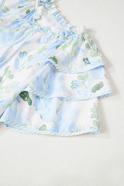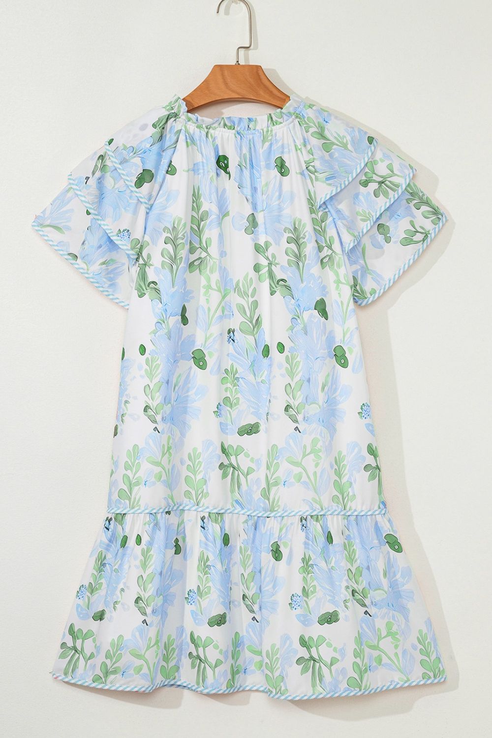Floral Contrast Edge Layered Short Sleeve Mini Dress