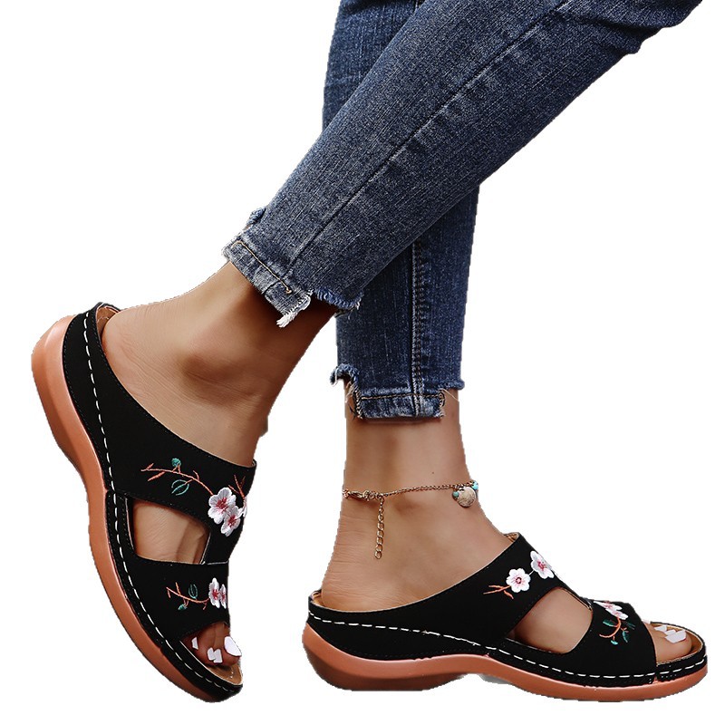 Floral Embroidered Cutout Sandals