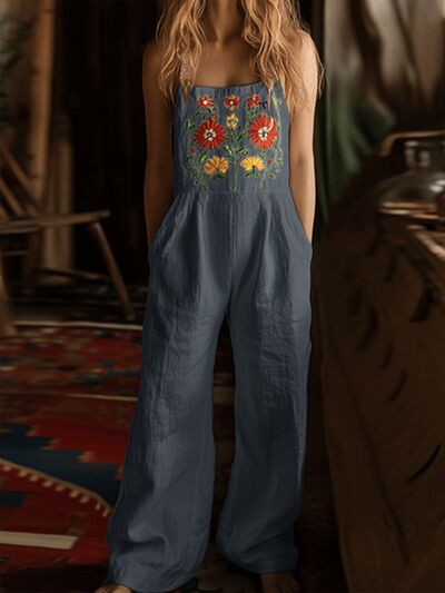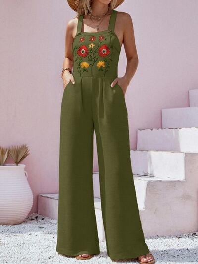 Floral Embroidered Wide Leg Jumpsuit