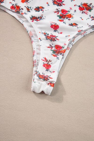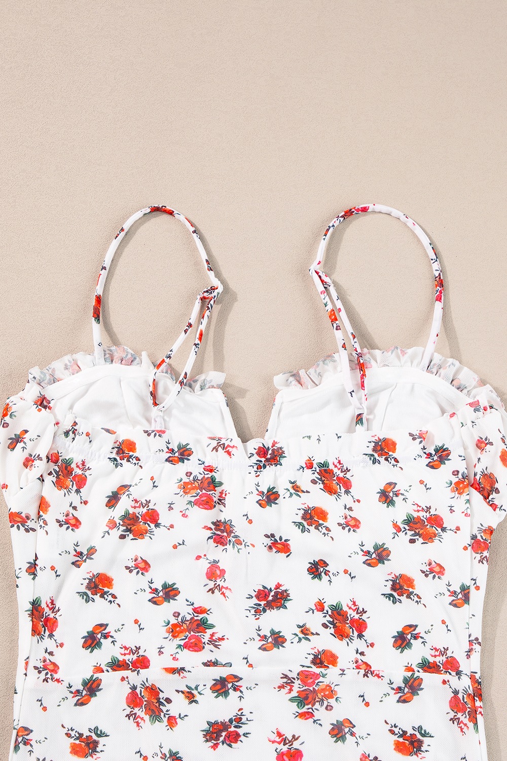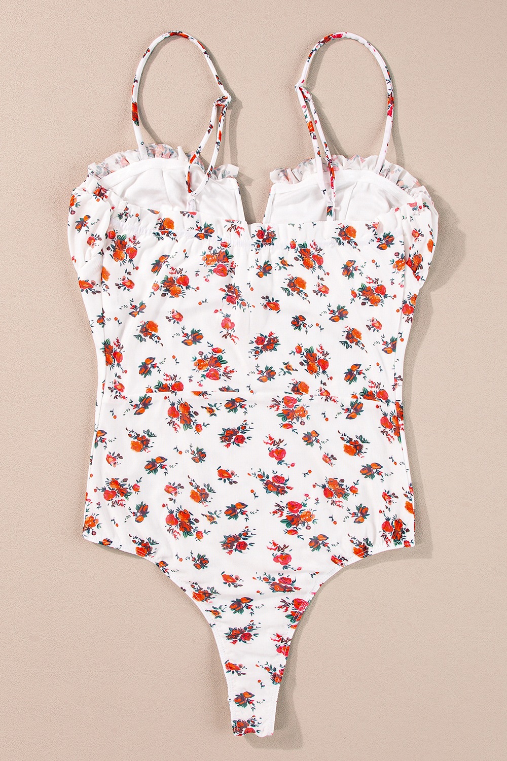 Floral Frilled Trim Spaghetti Straps Bodysuit