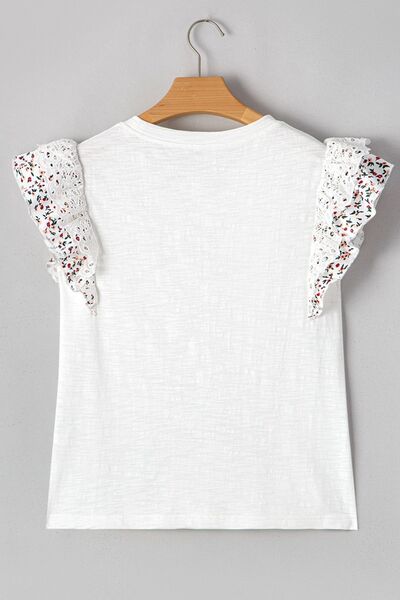 Floral Lace Eyelet Patched Butterfly Sleeve Blouse