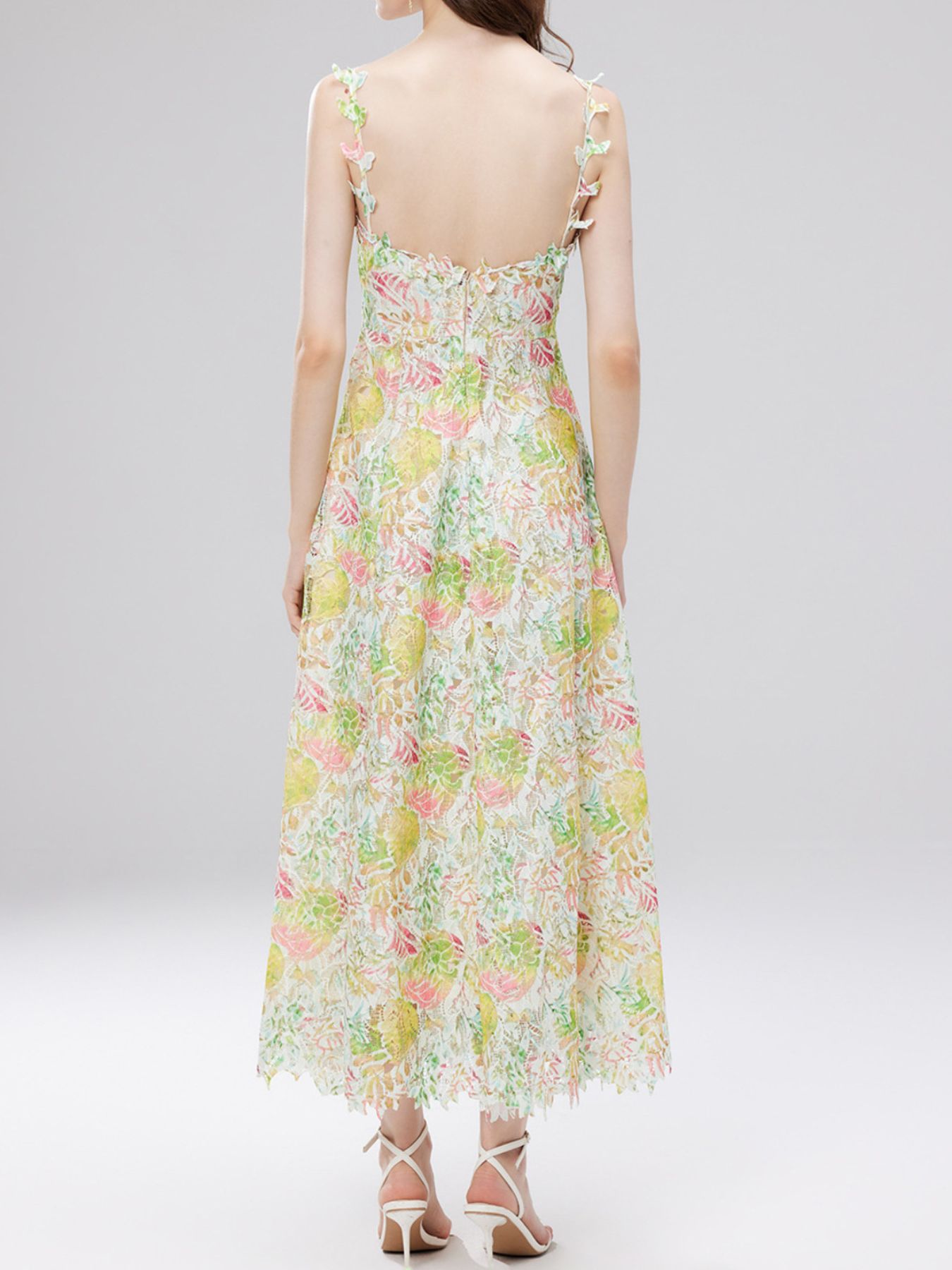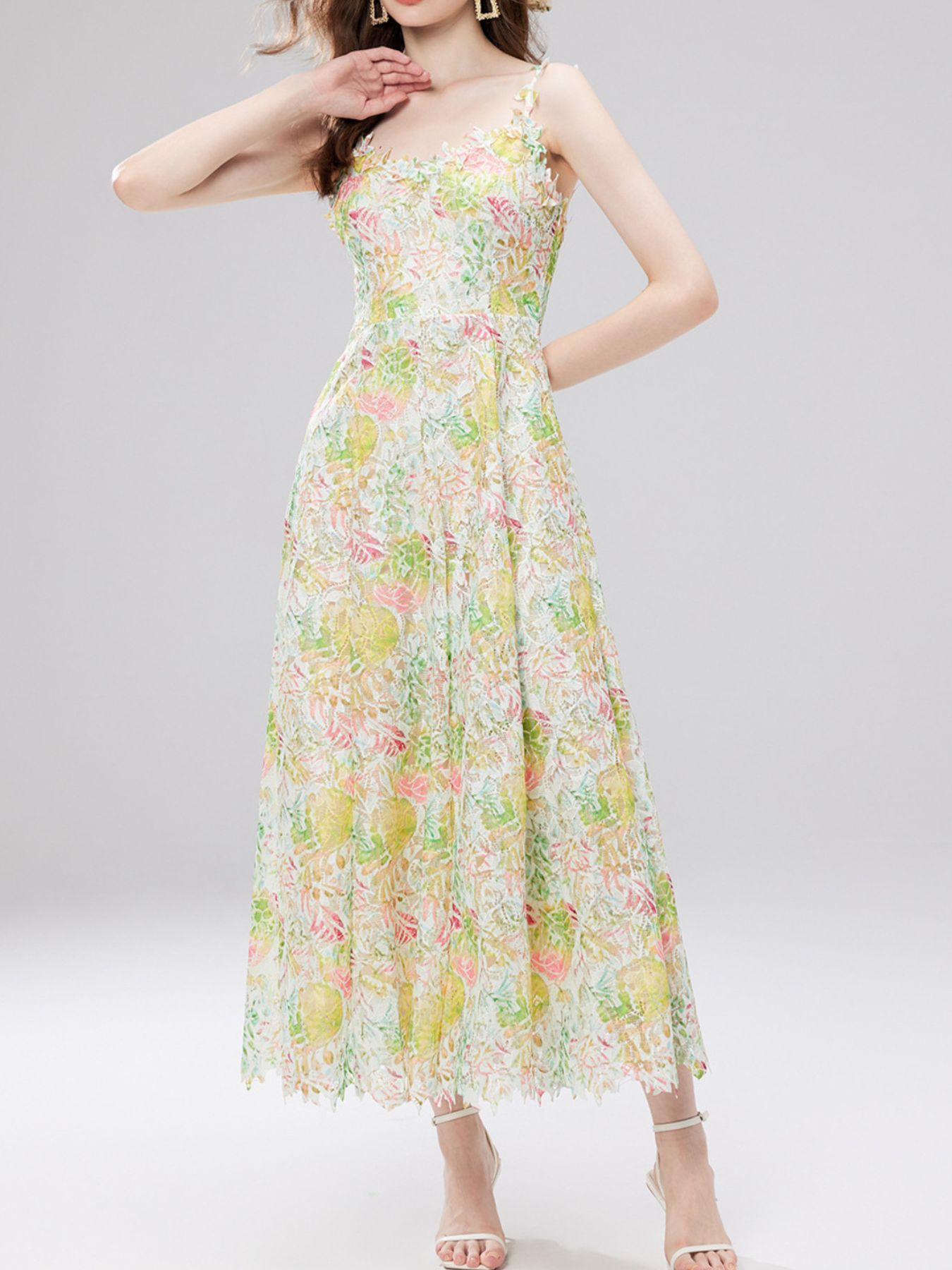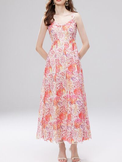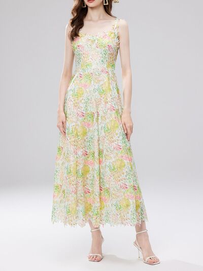 Floral Lace Sleeveless V-Neck Midi Dress