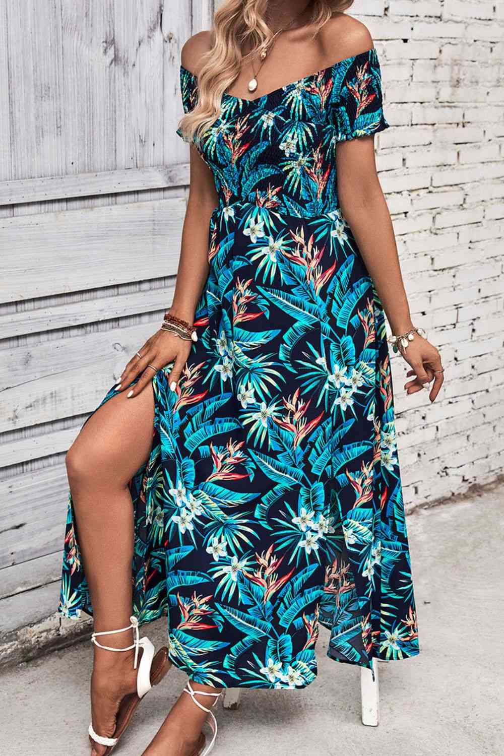 Floral Off-Shoulder Slit Dress