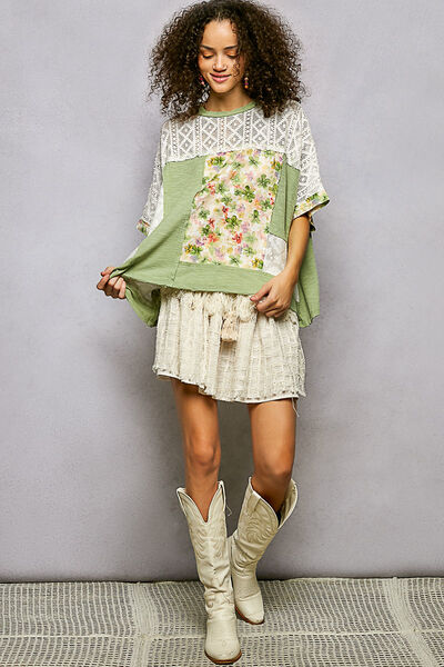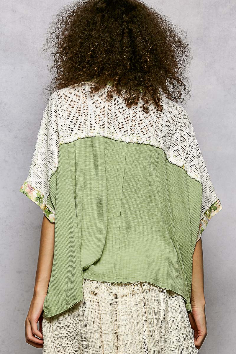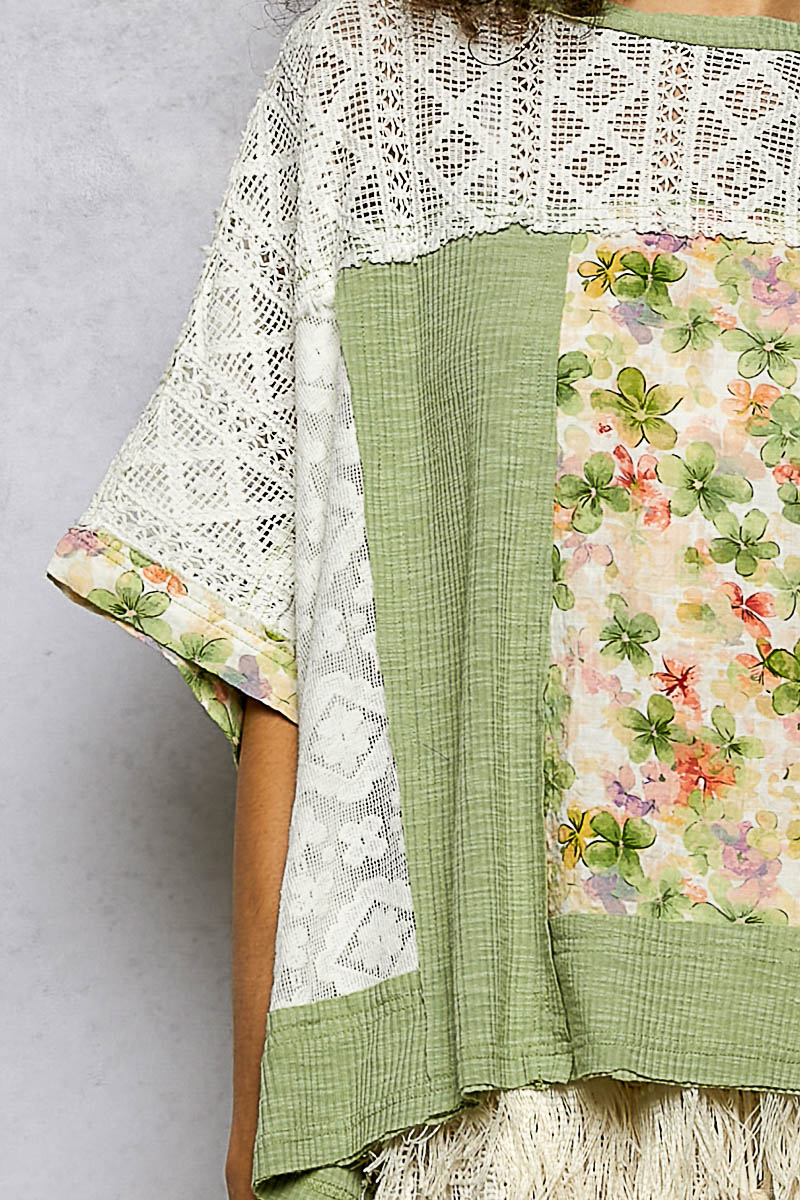 Floral Patchwork Lace Accent Blouse