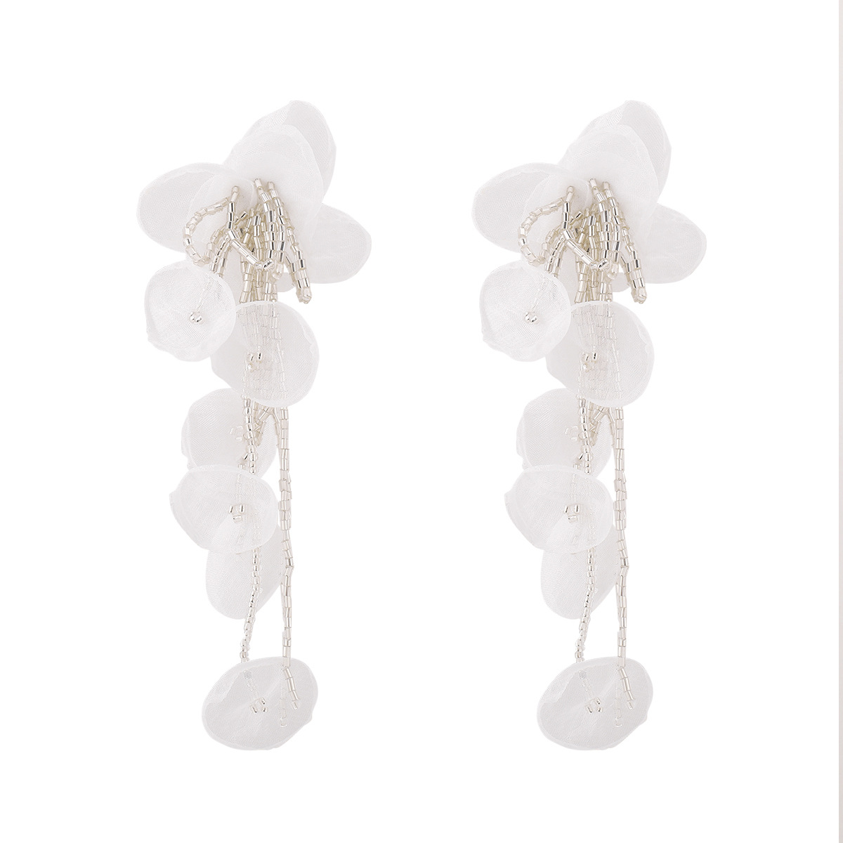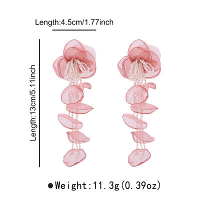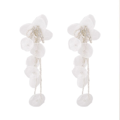Floral Petal Beaded Tassel Drop Earrings