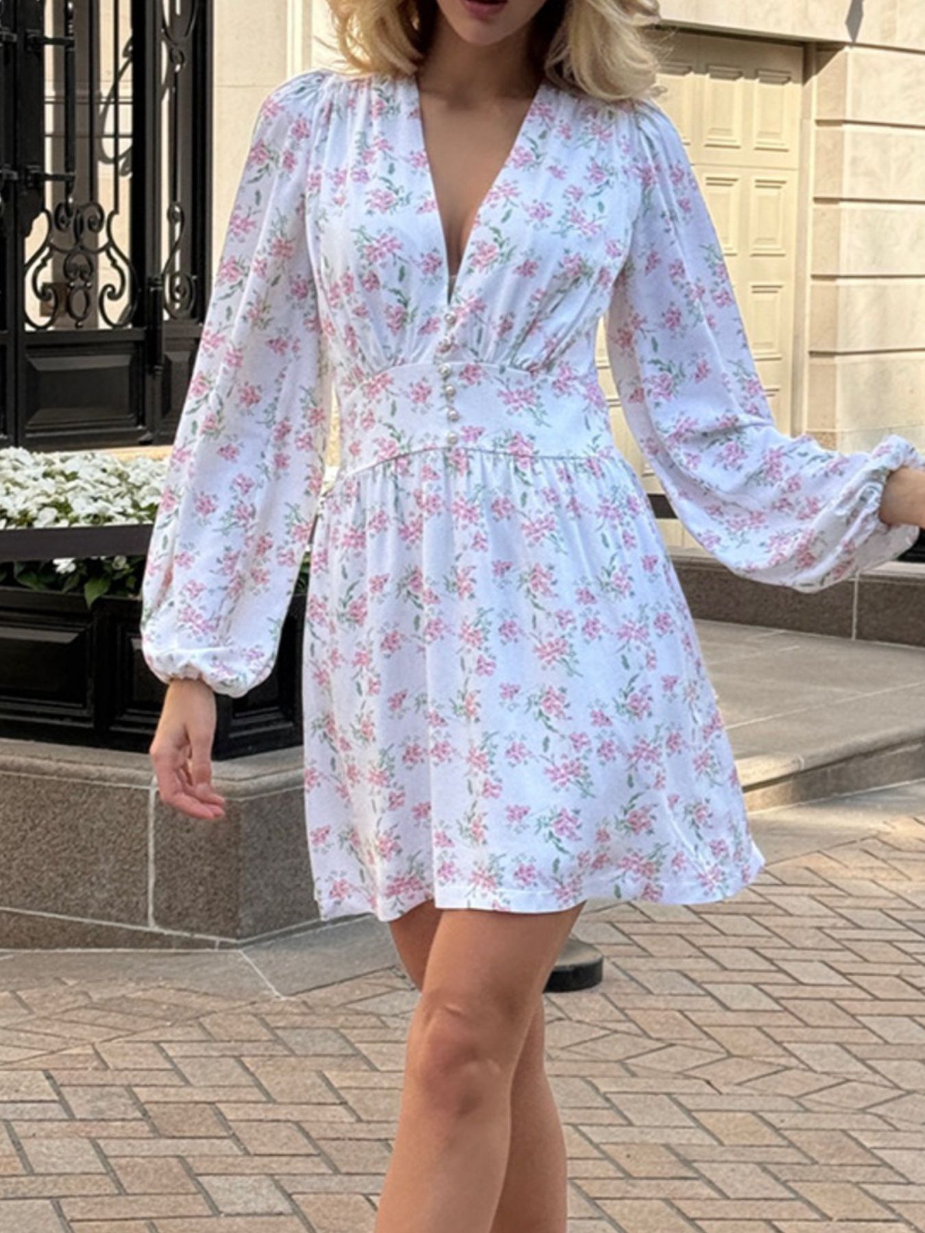 Floral Print Balloon Sleeve Dress