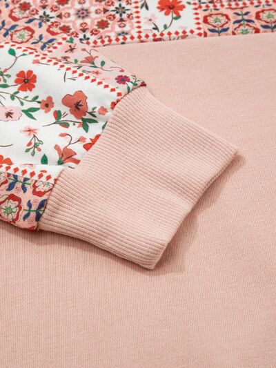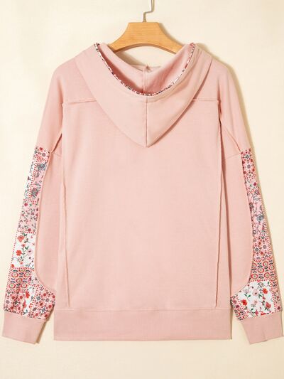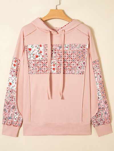 Floral Print Drawstring Long Sleeve Hoodie
