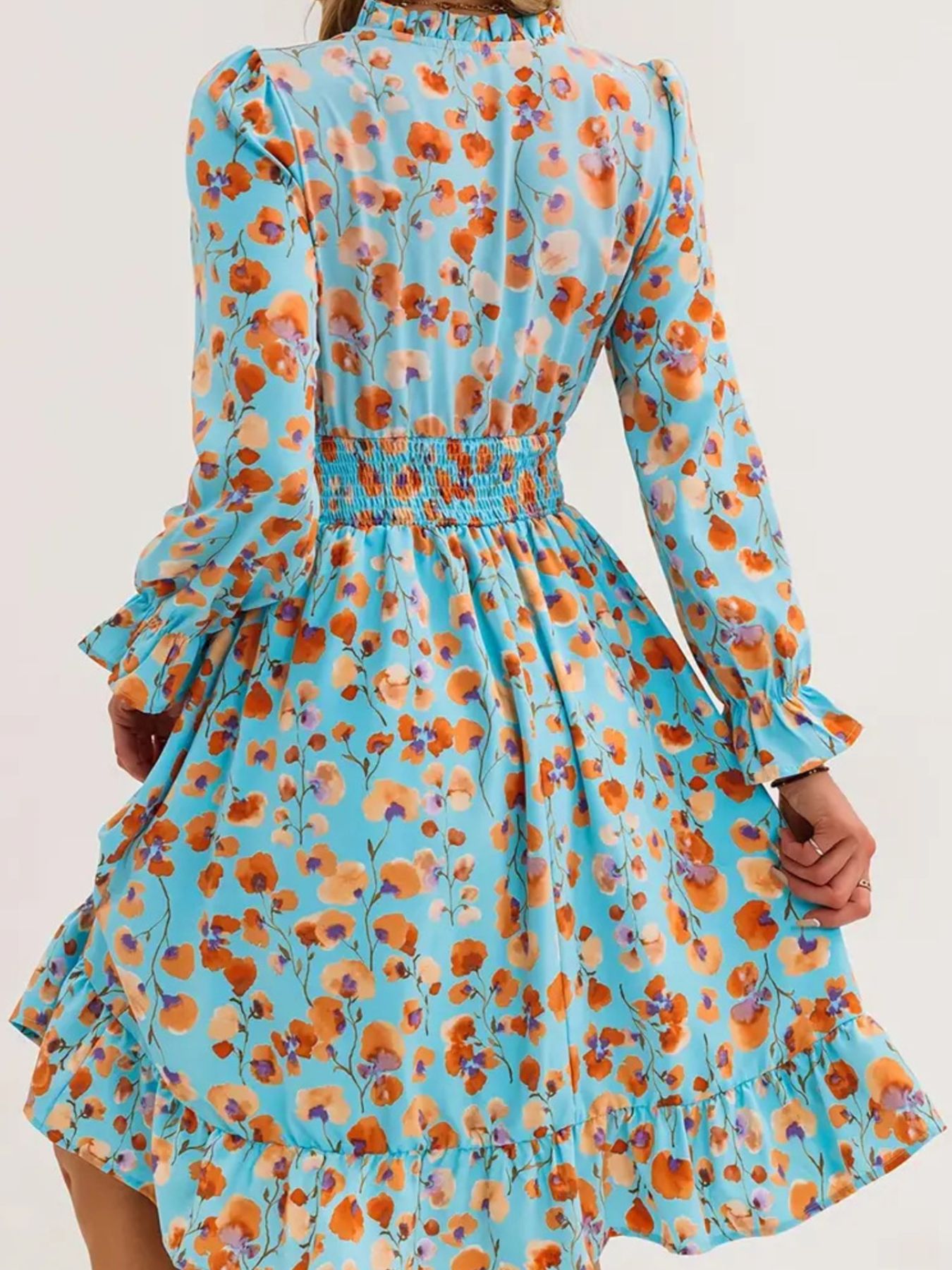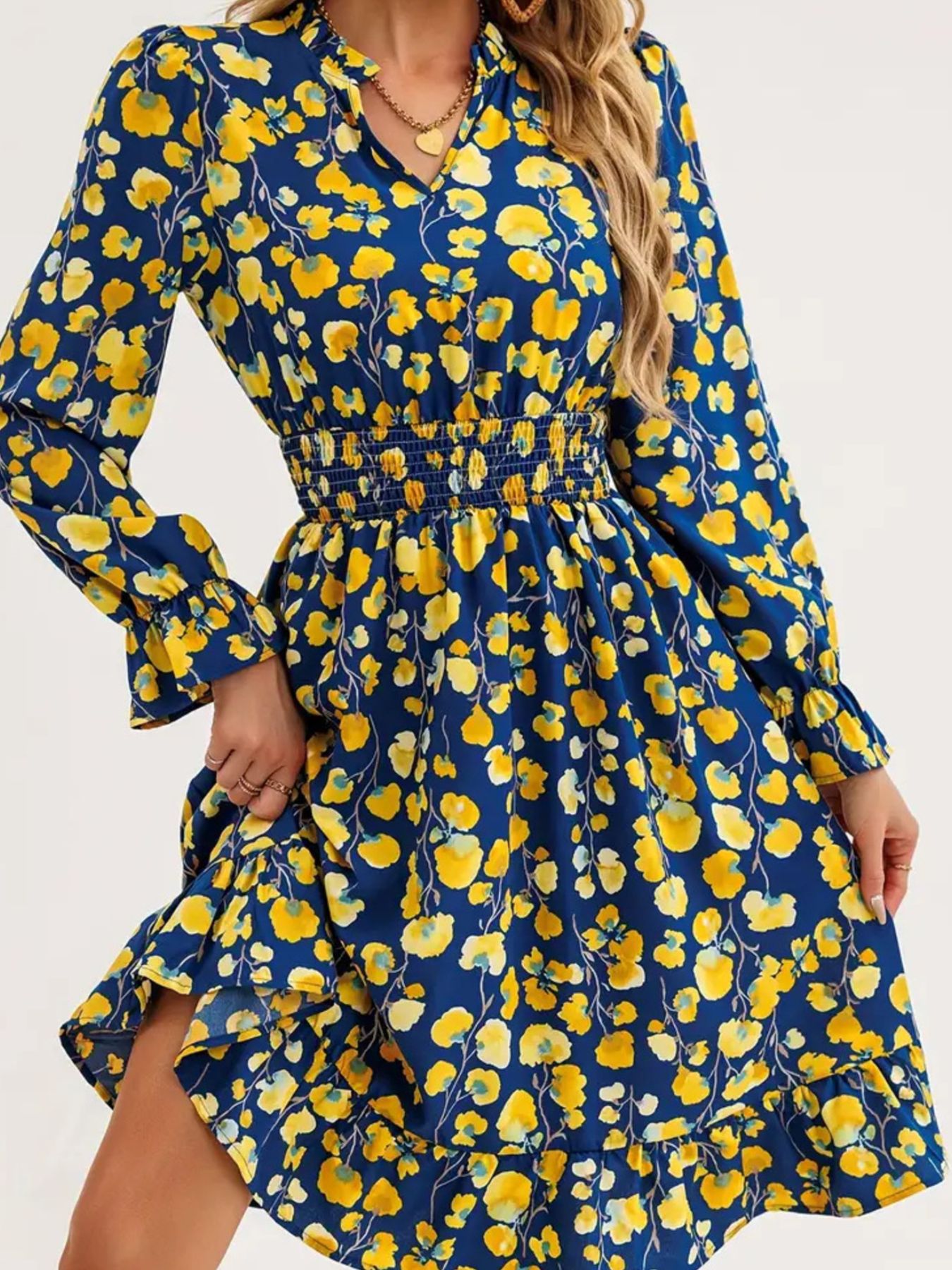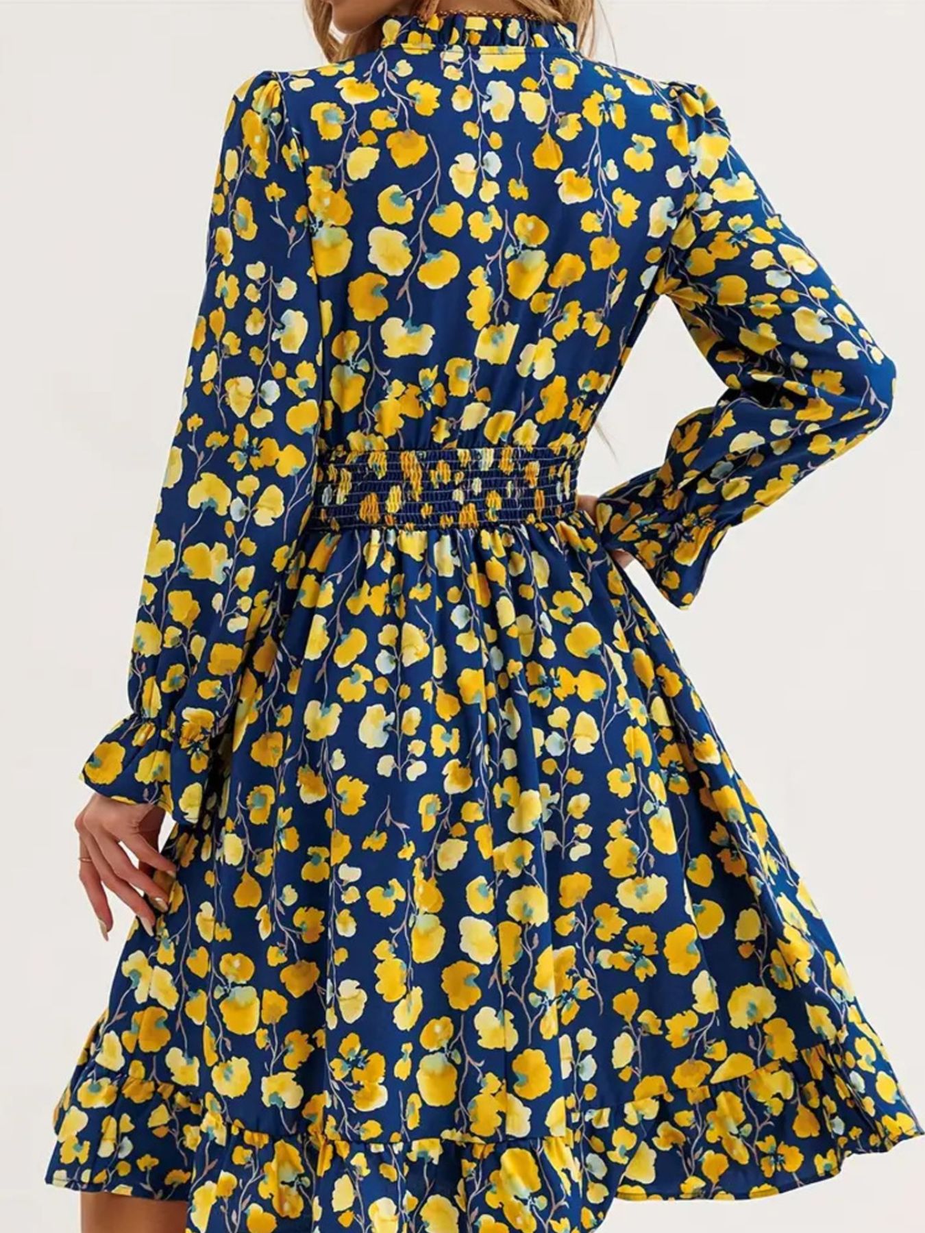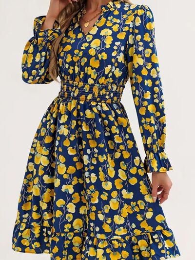 Floral Print Flounce Sleeve Ruffle Hem Dress