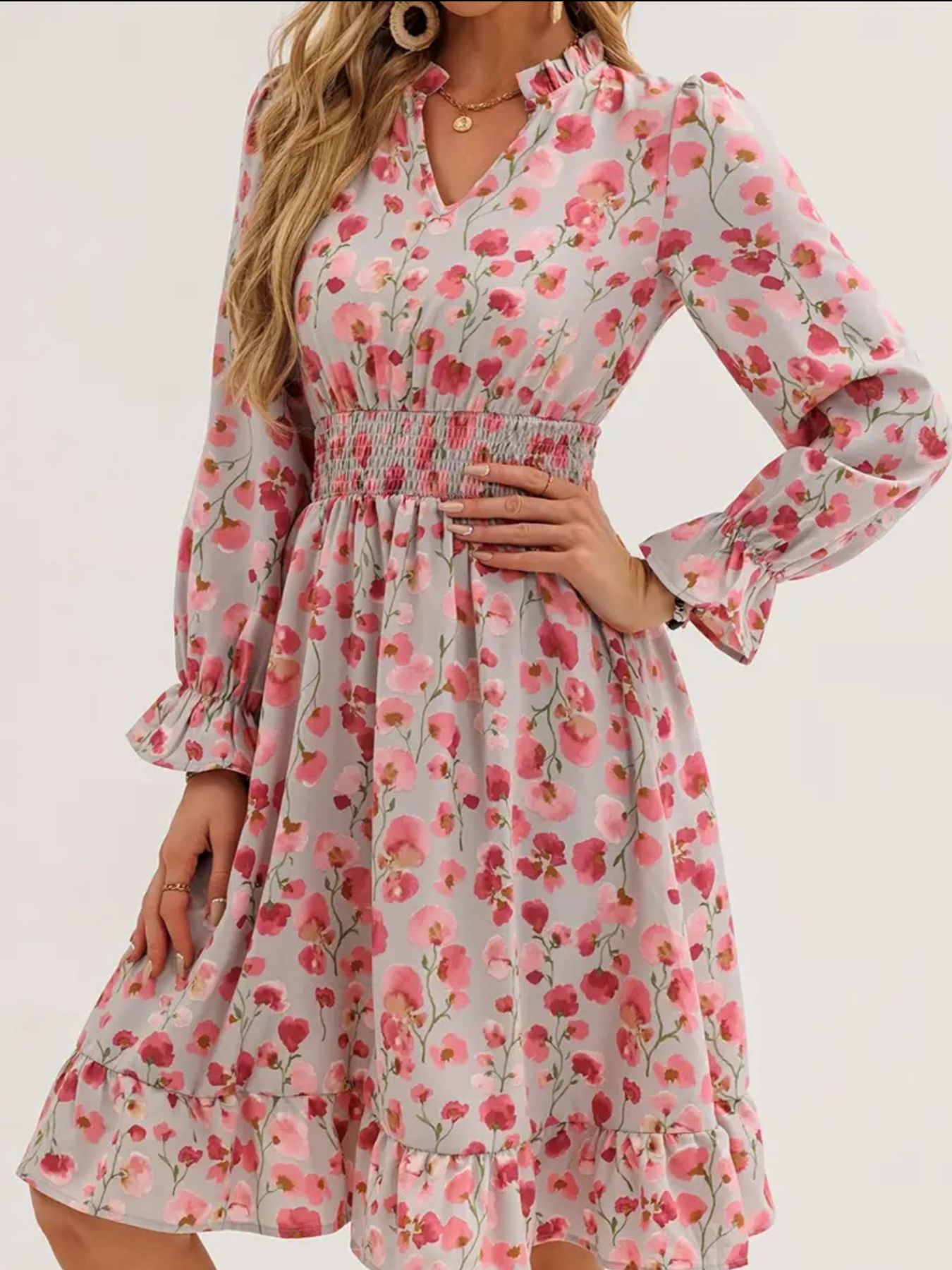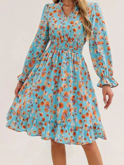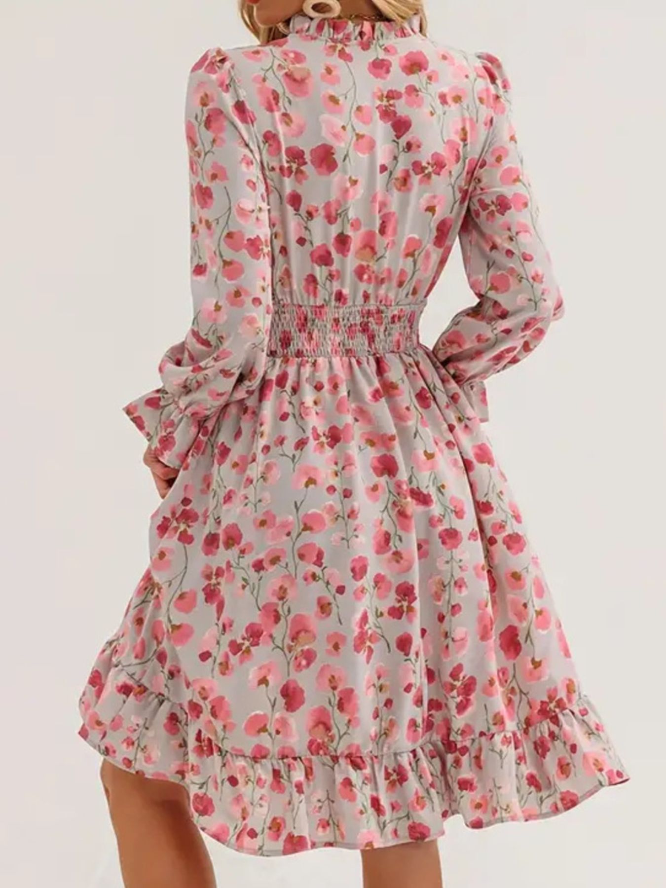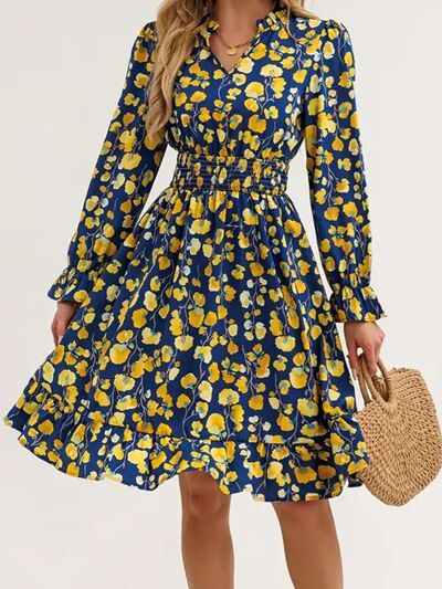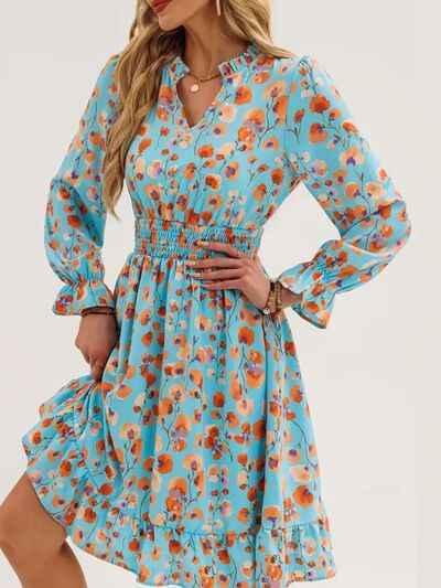Floral Print Flounce Sleeve Ruffle Hem Dress
