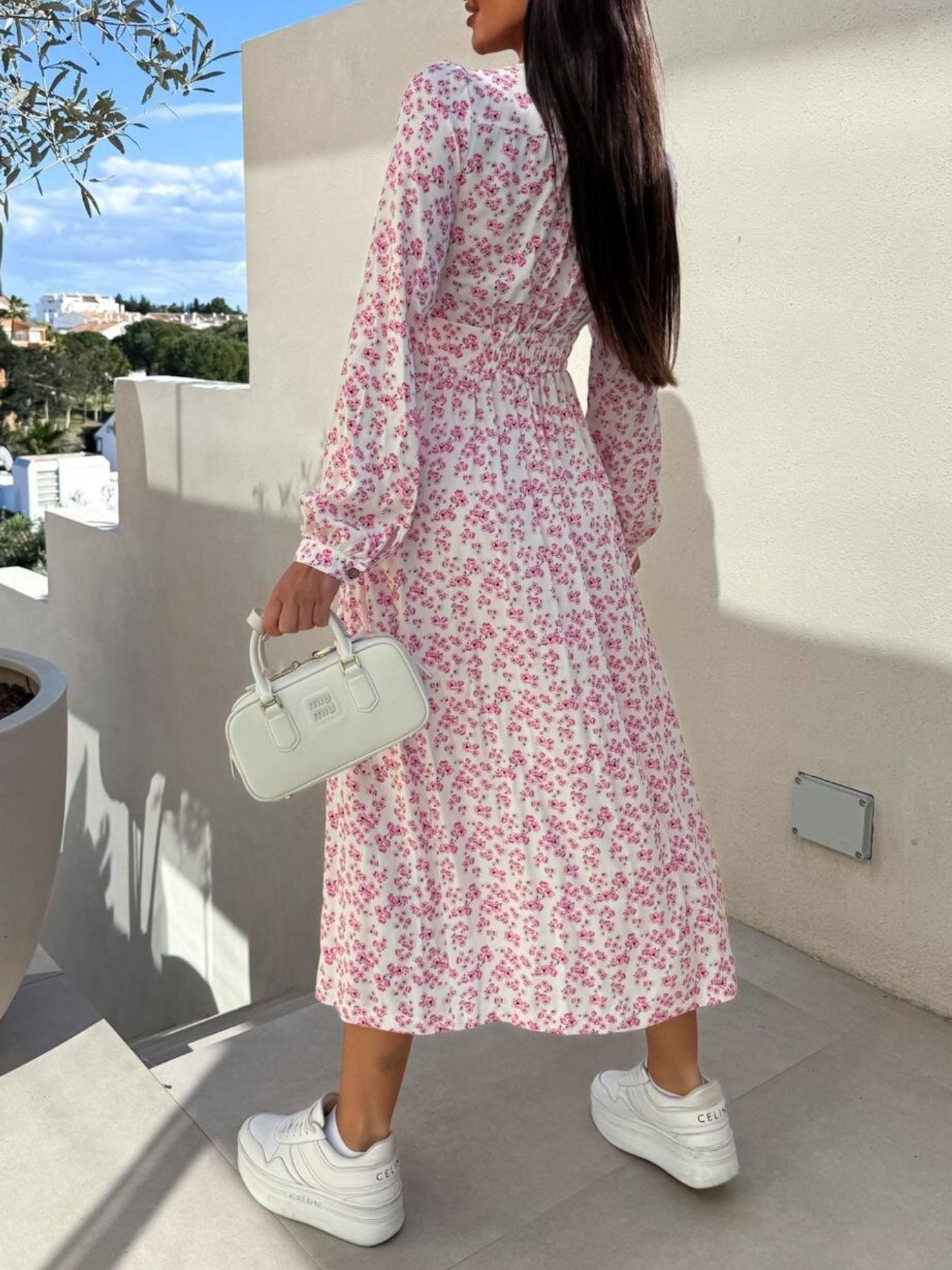 Floral Print Long Sleeve V-Neck Dress