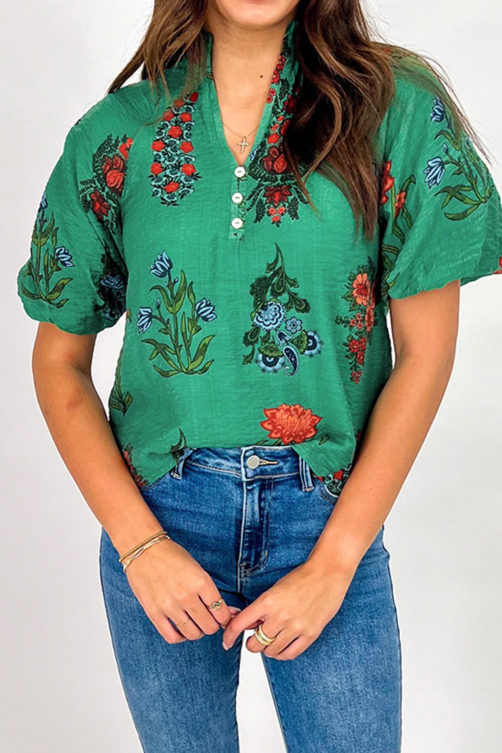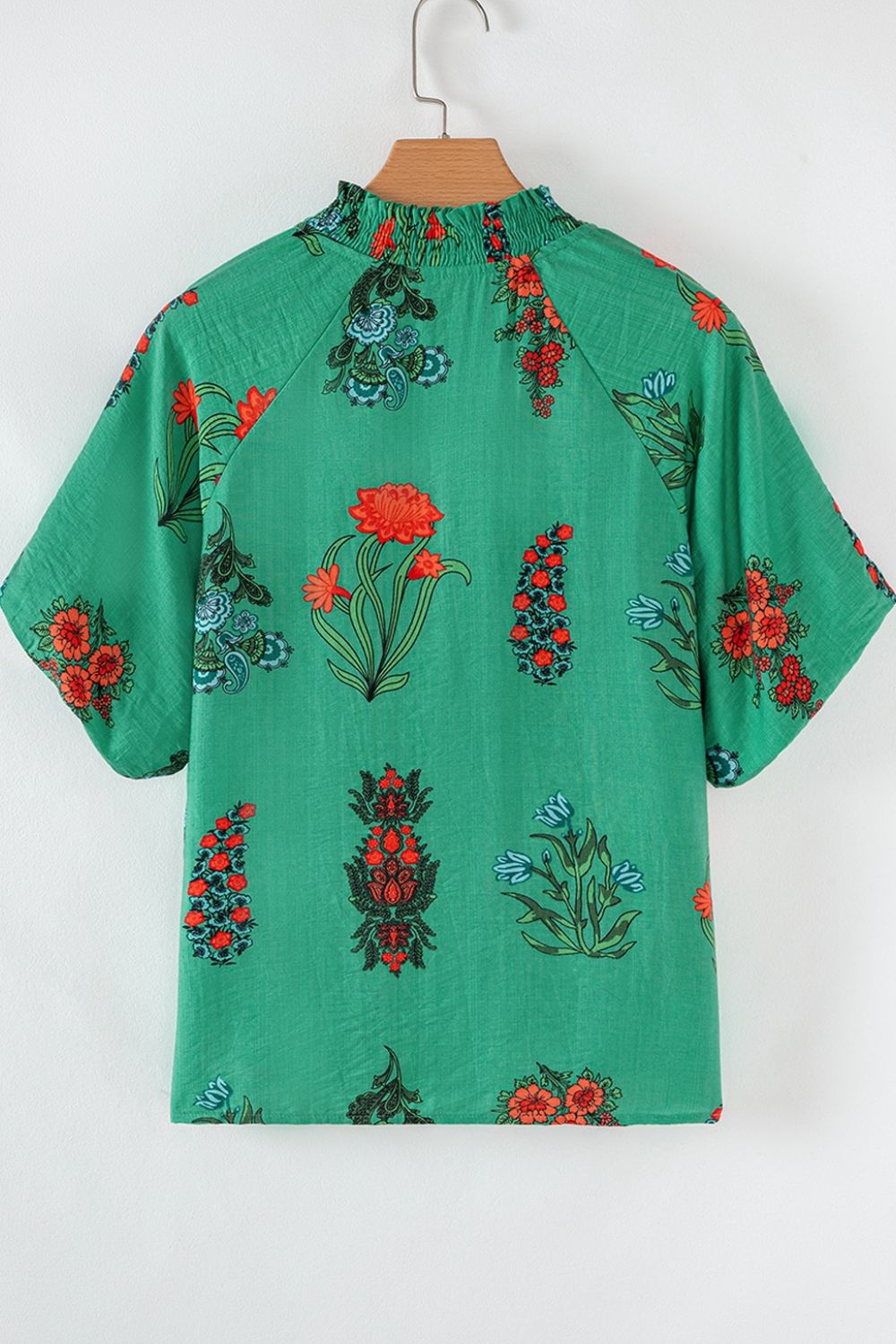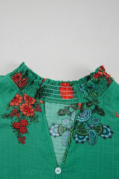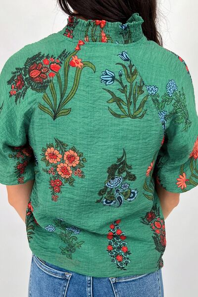 Floral Print Notched Short Sleeve Blouse