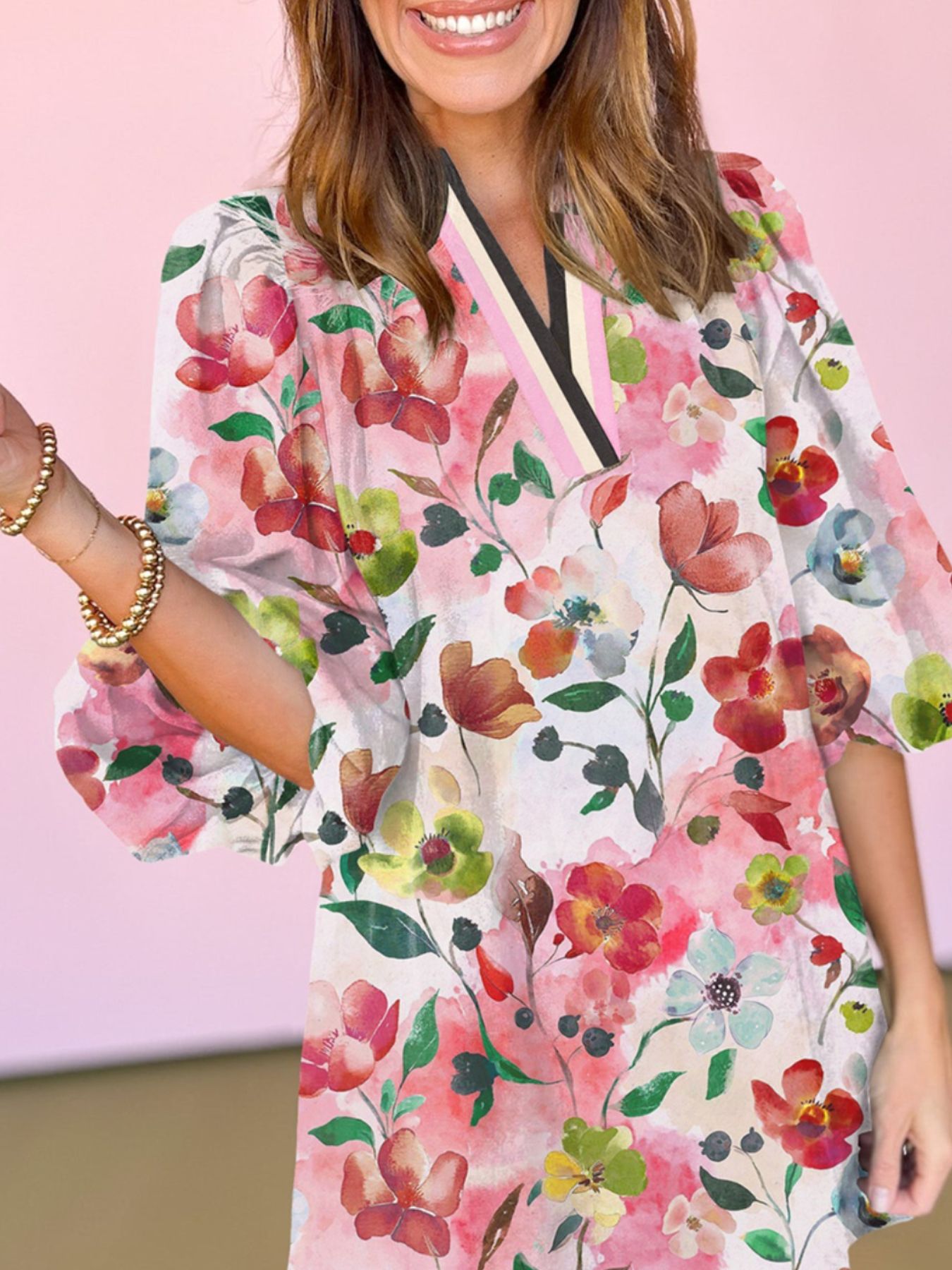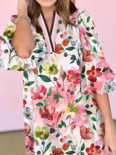 Floral Print Notched Tunic Dress